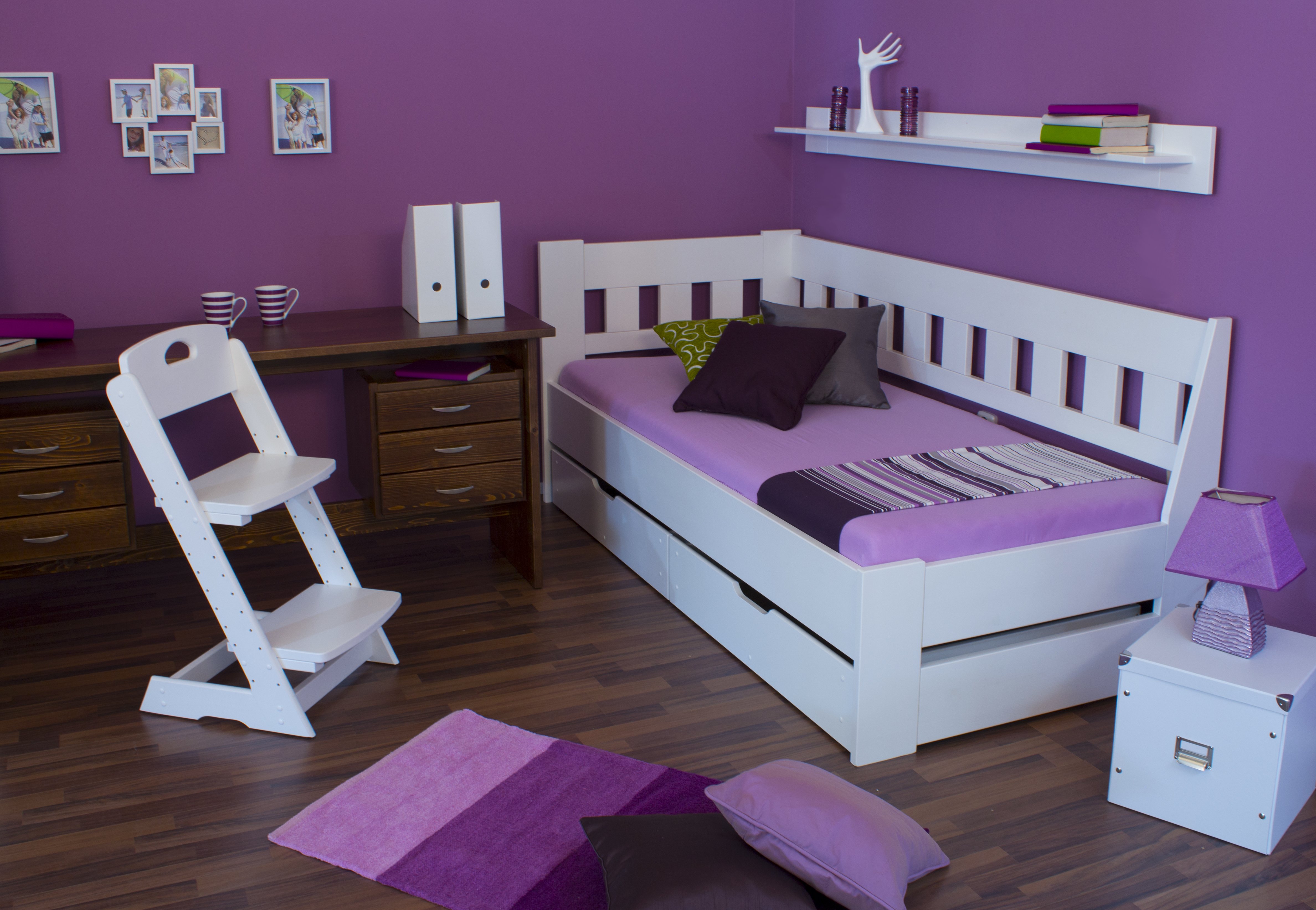 Základní EKOlak s UV filtrem je možné nahradit mořeným povrchem dle odstínu v tomto odkazu. Barevné sladění jednolůžkové postele s dalšími kusy nábytku je tak snadné a postel nám tak lépe zapadne a stane se tak příjemným doplněním interiéru ložnic a dětských pokojů.