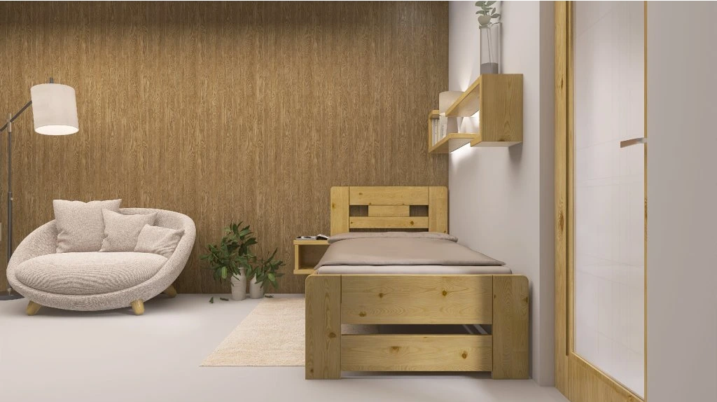 Jednolůžková postel BORA je nadčasovým typem jednolůžkové postele se zaoblenými hranami, která je vyrobena z kvalitního a precizně zpracovaného smrkového masivu. Postel je nabízena ve velikosti ložné plochy 90x200 cm a 120x200 cm. U postele máme možnost přenastavovat výšku uložení postelového roštu. V základní ceně jednolůžkové postele je zahrnuto lakování EKOlakem s UV filtrem, čímž je dána barevná stálost povrchu dřeva a také jeho povrchová odolnost. Postel si můžeme nechat namořit na některý z nabízených odstínů v konfigurátoru. S výběrem vhodného roštu nebo matrace velmi rádi poradíme, prosím, kontaktujte nás.
