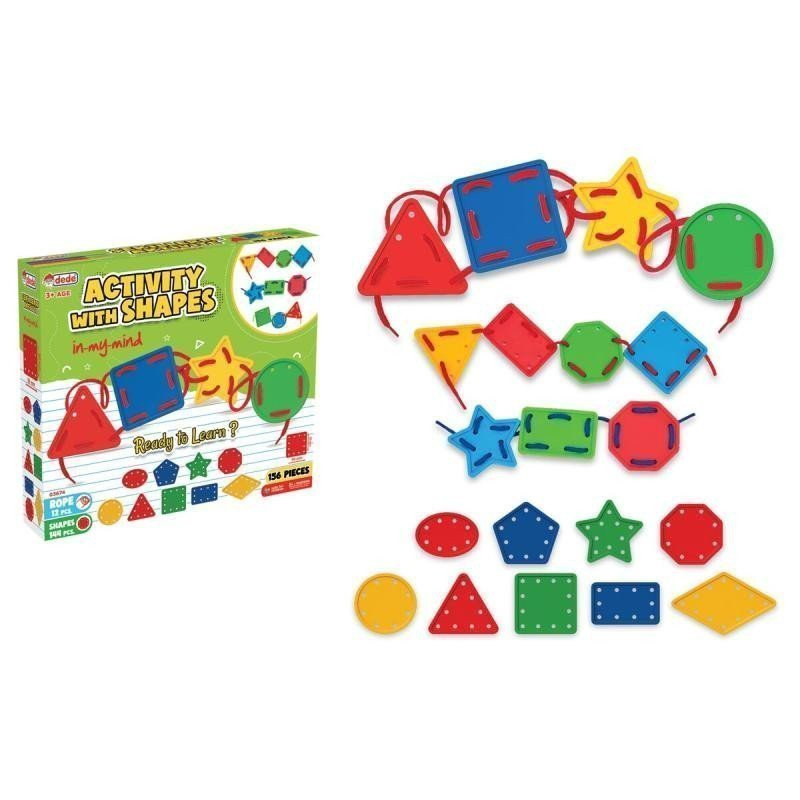 Navlékací hra s tvary je ideální hrou pro procvičení jemné motoriky, trpělivosti a paměti. Sada obsahuje 156 dílků, rozměr balení je 295x265x60