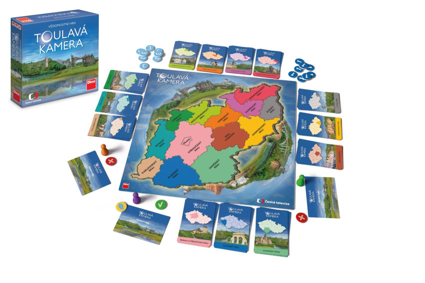 Rodinná hra inspirovaná oblíbeným pořadem České televize Toulavá kamera. Připomeňte si nejzajímavější a nejkrásnější místa, která jste s Toulavou kamerou navštívili a poměřte své vědomosti s ostatními hráči. K tomu, abyste vyhráli, potřebujete nejen znalosti, ale i dobrý odhad spoluhráčů, taktiku a trošku pověstného štěstí. Hra obsahuje: 1 herní plán, 225 karet s otázkami, 15 karet úkolů, 5 figurek, 72 žetonů, 1 pravidla Rozměr balení: 24x24x6cm Vhodné pro děti od 10 let