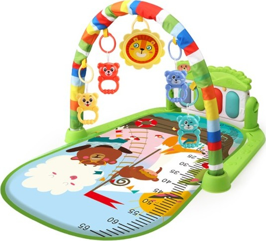 Objevte ideální hračku pro vaše nejmenší s touto hrací podložkou, která stimuluje zrak, sluch i motoriku. Podložka je vyrobena z měkkého a příjemného materiálu, který poskytuje dětem pohodlí při hře. Veselé barvy a různé textury podněcují zvídavost a rozvíjejí smyslové vnímání. Na hrazdičce jsou zavěšena roztomilá, barevná zvířátka, která mohou děti pozorovat a chytat, což pomáhá rozvíjet jemnou motoriku a koordinaci. Součástí podložky je interaktivní piáno, které vydává veselé zvuky a melodie, když dítě stiskne klávesy. Hraní na piánu podporuje sluchové vnímání, rozpoznávání zvuků a zábavné objevování hudby. Tato podložka je ideální pro děti od 3 měsíců, které začínají objevovat svět kolem sebe a zároveň si užívají zábavné a edukativní aktivity.