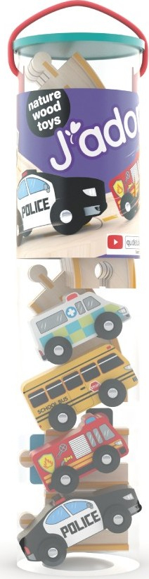 J`adore je řada vzdělávacích hraček pro nejmenší, vyrobených z ekologicky udržitelného dřeva, bez chemikálií. Produkt stimuluje dětskou fantazii. Set je vhodný pro děti od 18 měsíců. Set obsahuje koleje a vozidla z městského provozu. Koleje jsou široké 4 cm.