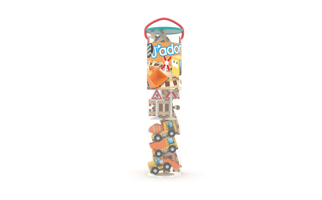 J`adore je řada vzdělávacích hraček pro nejmenší, vyrobených z ekologicky udržitelného dřeva, bez chemikálií. Produkt stimuluje dětskou fantazii. Set je vhodný pro děti od 18 měsíců. Set obsahuje koleje a stavební stroje. Výrobek stimulujte dětskou představivost. Koleje jsou široké 4 cm.