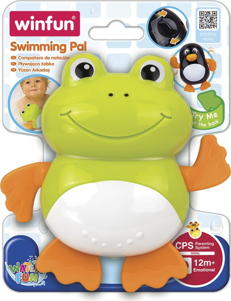 Žába do vany zabaví každého dítě při koupání. Kolečkem na hračce ji natáhnete a při vložení do vody uvidíte, jak plave. Hračka nevyžaduje baterie.