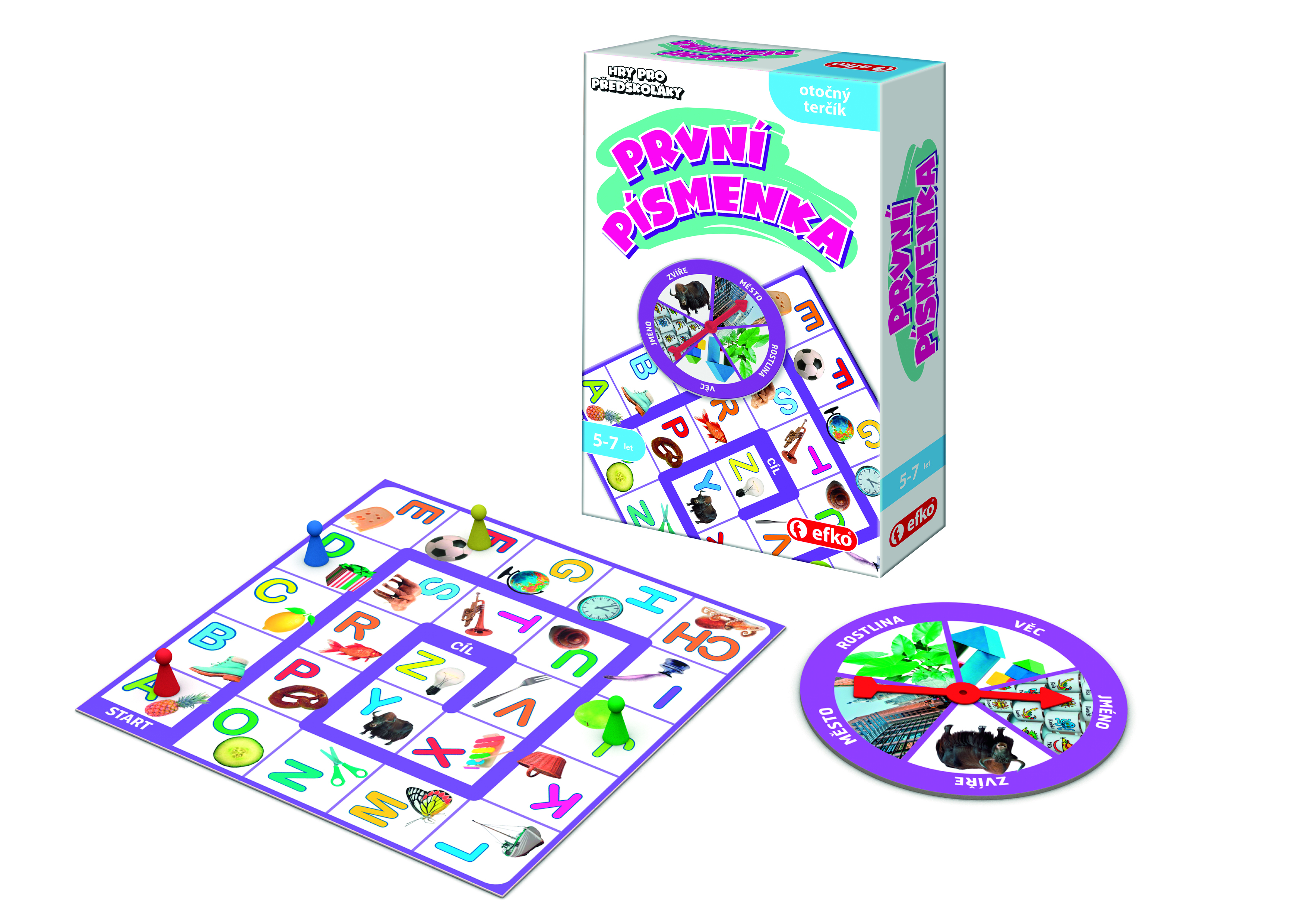 Zábavná vzdělávací hra, která pomáhá dětem rozvíjet slovní zásobu a zdokonalovat jejich schopnost rychle identifikovat jednotlivá písmena a tvořit z nich slova. S „Prvními písmenky“ se vaše děti naučí písmenka hravě a bez stresu. Vyrobeno v ČR.