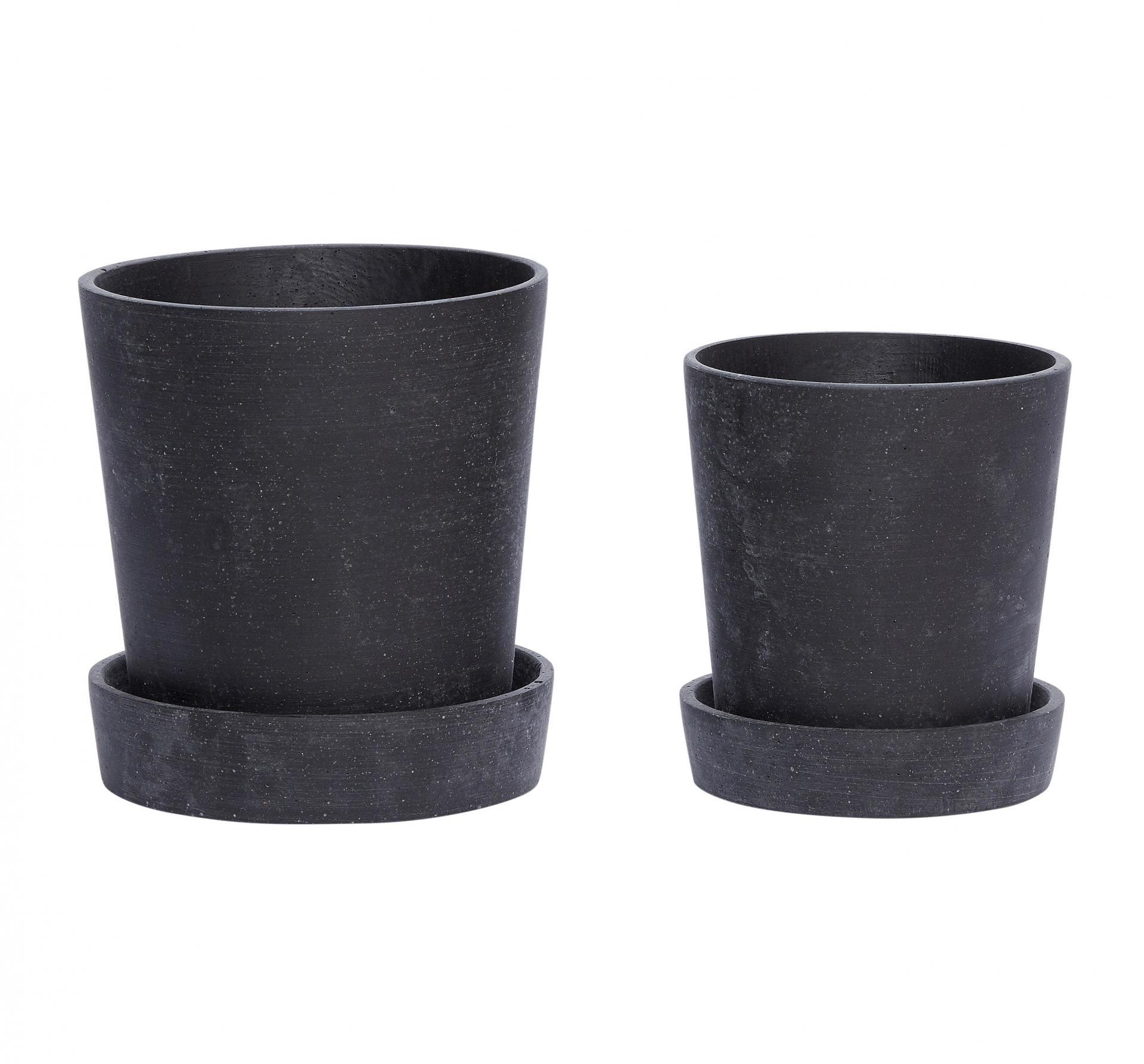 Hübsch Obal na květináč s miskou Black Větší, černá barva, beton. Elegantní betonový obal na květináč bude slušet každé rostlince. A je jedno, jestli to bude barevně kvetoucí květina či pichlavý kaktus.