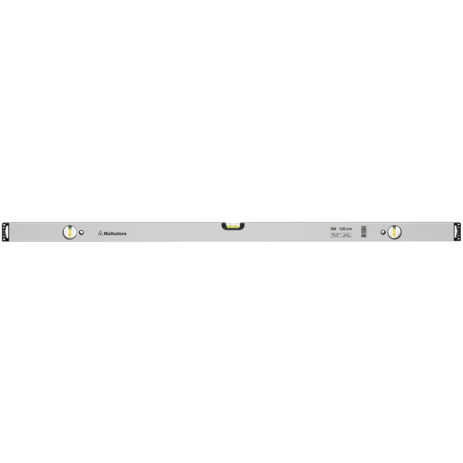 3 nárazuvzdorné libely, poloměr libely = 200 mm, citlivost 10 mm/m. Tolerance pro měření v normální poloze: +/-0,75 mm. Tolerance pro měření v obrácené poloze: +/- 1 mm. Libely obsahují zabarvenou olejovou směs s nízkou viskozitou pro optimální pohyb bubliny. Olejová směs má antistatické vlastnosti. Je odolná vůči UV záření a výkyvům teplot. Ochranné pryžové protinárazové koncovky jsou snímatelné. Odolný hliníkový profil: 49x21 mm, hmotnost 520 g/m Délka vodováhy: 1200 mm