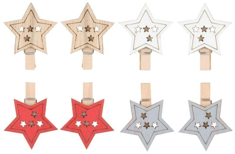 Hvězda dřevěná na kolíčku 4,5 cm (8 ks)