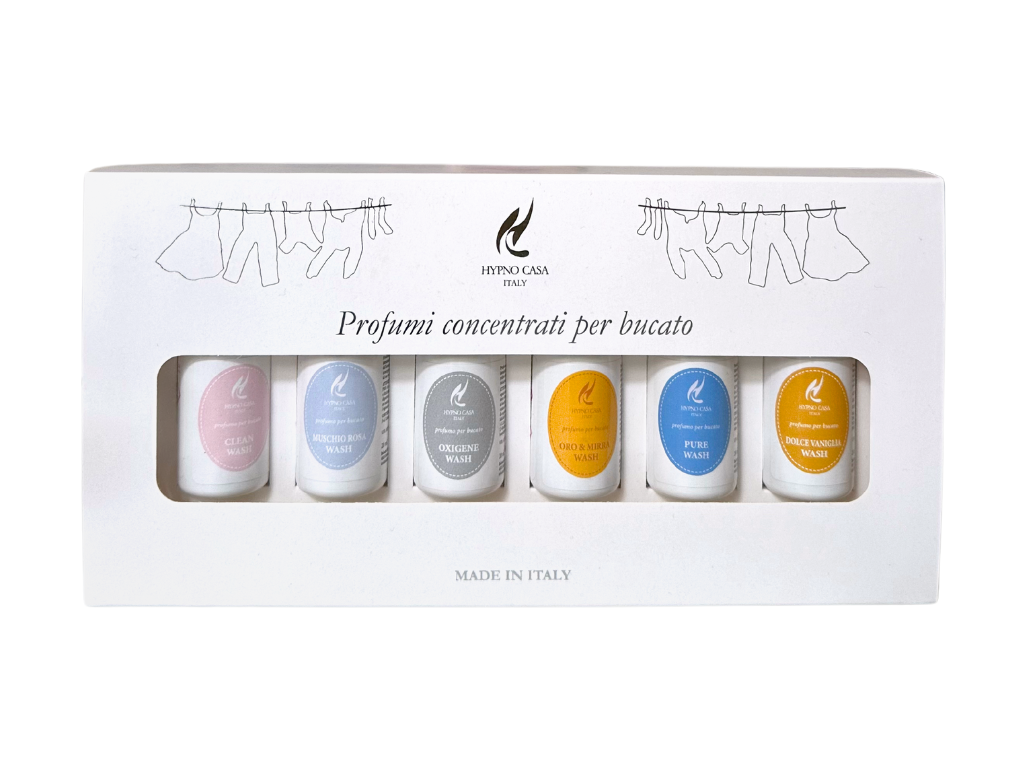 Dárková sada(6-pack) obsahuje 6 lahviček o objemu 20 ml. V každé z nich naleznete jednu ze šesti nejpopulárnějších vůní parfémů na praní Hypno Casa.