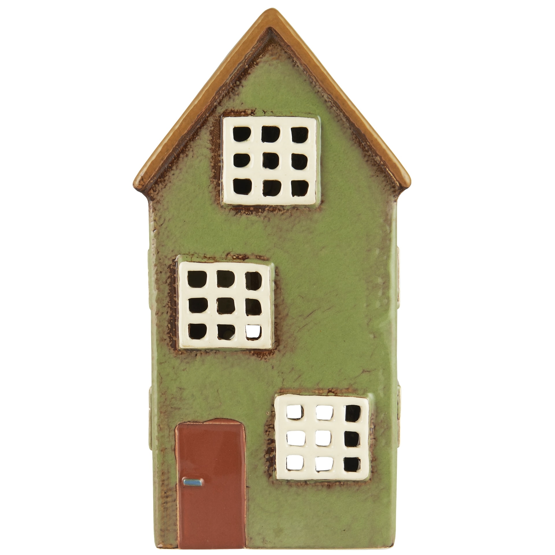 Keramický svícen od dánské značky Ib Laursen je vysoký, má zastřeně zelenou fasádu, bílá okna a výrazné hnědé dveře. Je určený pro čajovou svíčku, která se vkládá ze zadní strany domečku. Tlumené světlo svíčky pak krásně prosvítá vyřezávanými okýnky a vytváří tu nejpříjemnější atmosféru, na kterou se budete těšit večer co večer. výška 21,5 cm / šířka 11 cm / hloubka 8 cm Vyrobeno z keramiky.