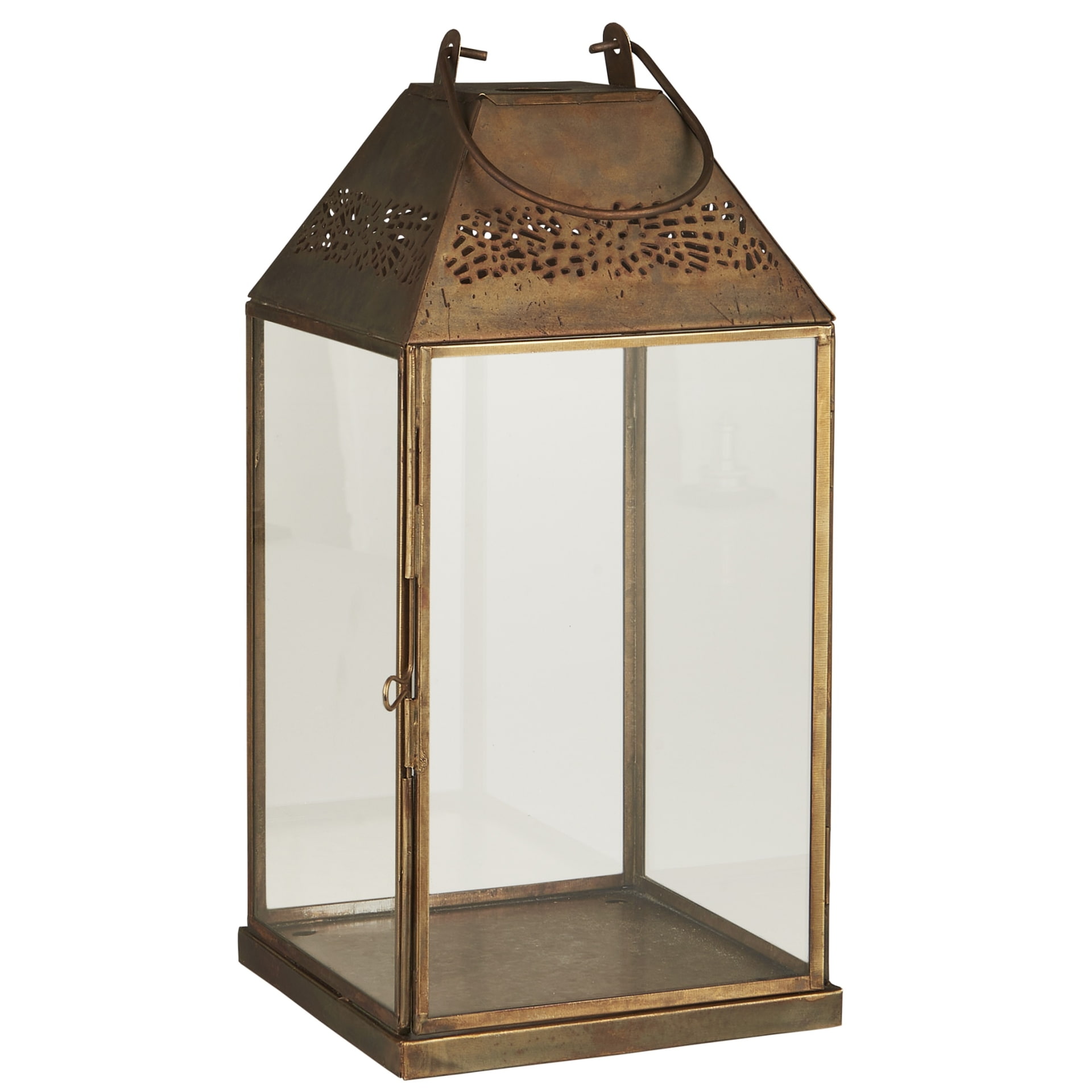 Ib Laursen Lucerna Elliot Patterned Roof, měděná barva, sklo, kov. Jaká jiná dekorace dokáže vykouzlit tak kouzelnou atmosféru, než rozzářené světlo svíček v lucerně. Nechejte světlem svíčky rozjasnit vaši terasu, zápraží nebo koutek v obývacím pokoji za pomocí této lucerny od dánské značky IB Laursen.