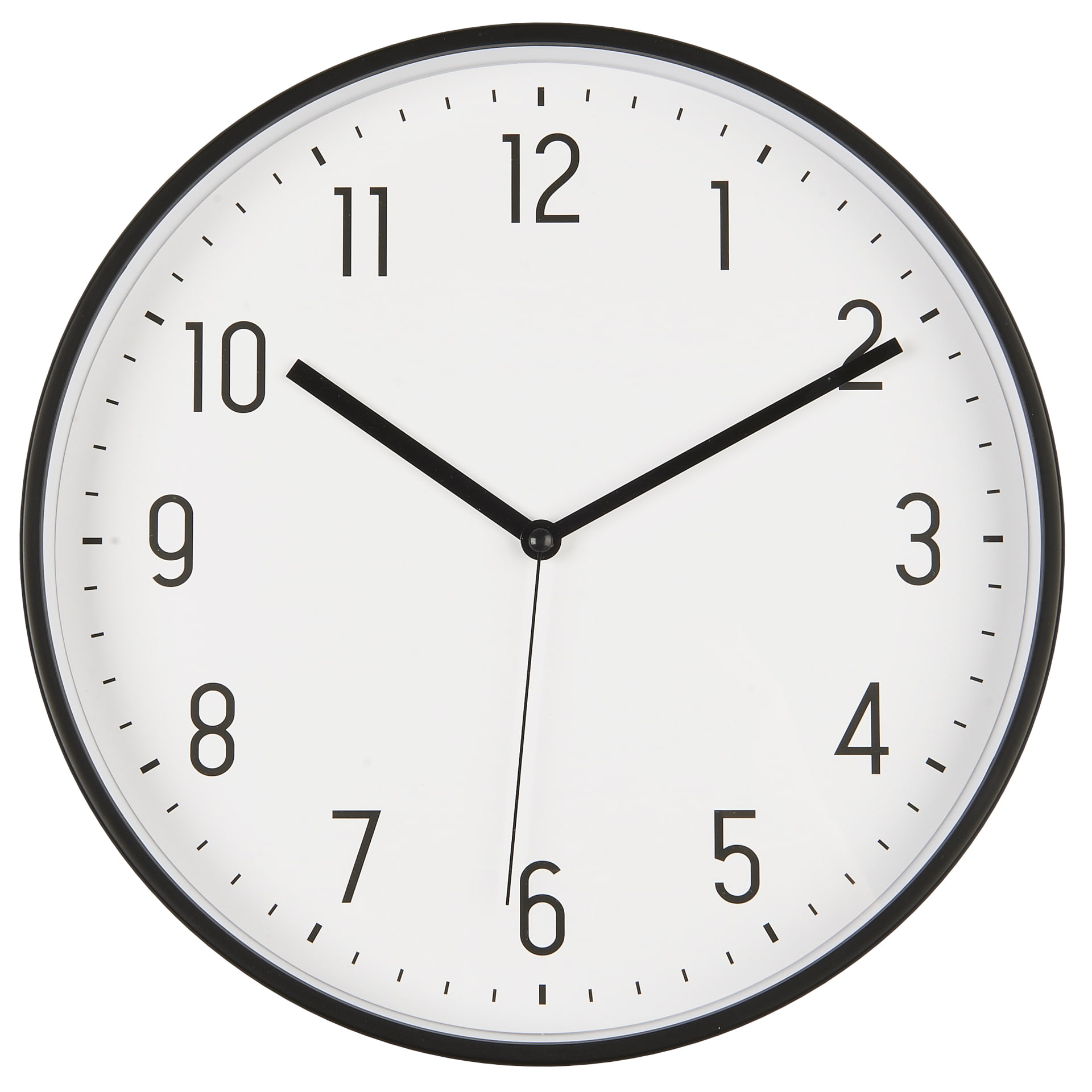 Zdobí je černý rám a velké černé čitelné číslice na bílém pozadí. Jednoduchý a moderní design bude slušet kuchyni nebo obývacímu pokoji, kde vyniknou třeba vedle plakátů na zdi. průměr 30 cm / hloubka 4,4 cm Vyrobeno z plastu.