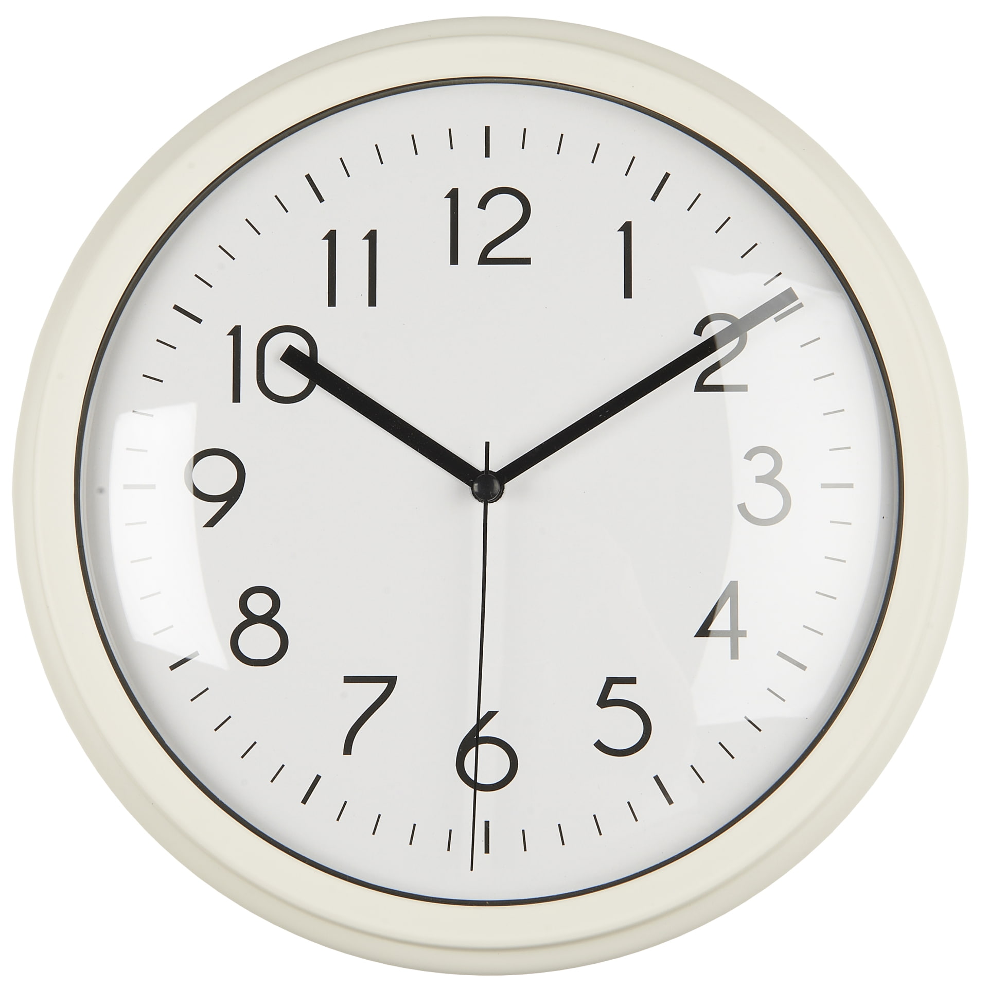 Zdobí je světle krémový rám a velké černé čitelné číslice na bílém pozadí. Jednoduchý a moderní design bude slušet kuchyni nebo obývacímu pokoji, kde vyniknou třeba vedle plakátů na zdi. průměr 26 cm / hloubka 5 cm Vyrobeno z plastu.