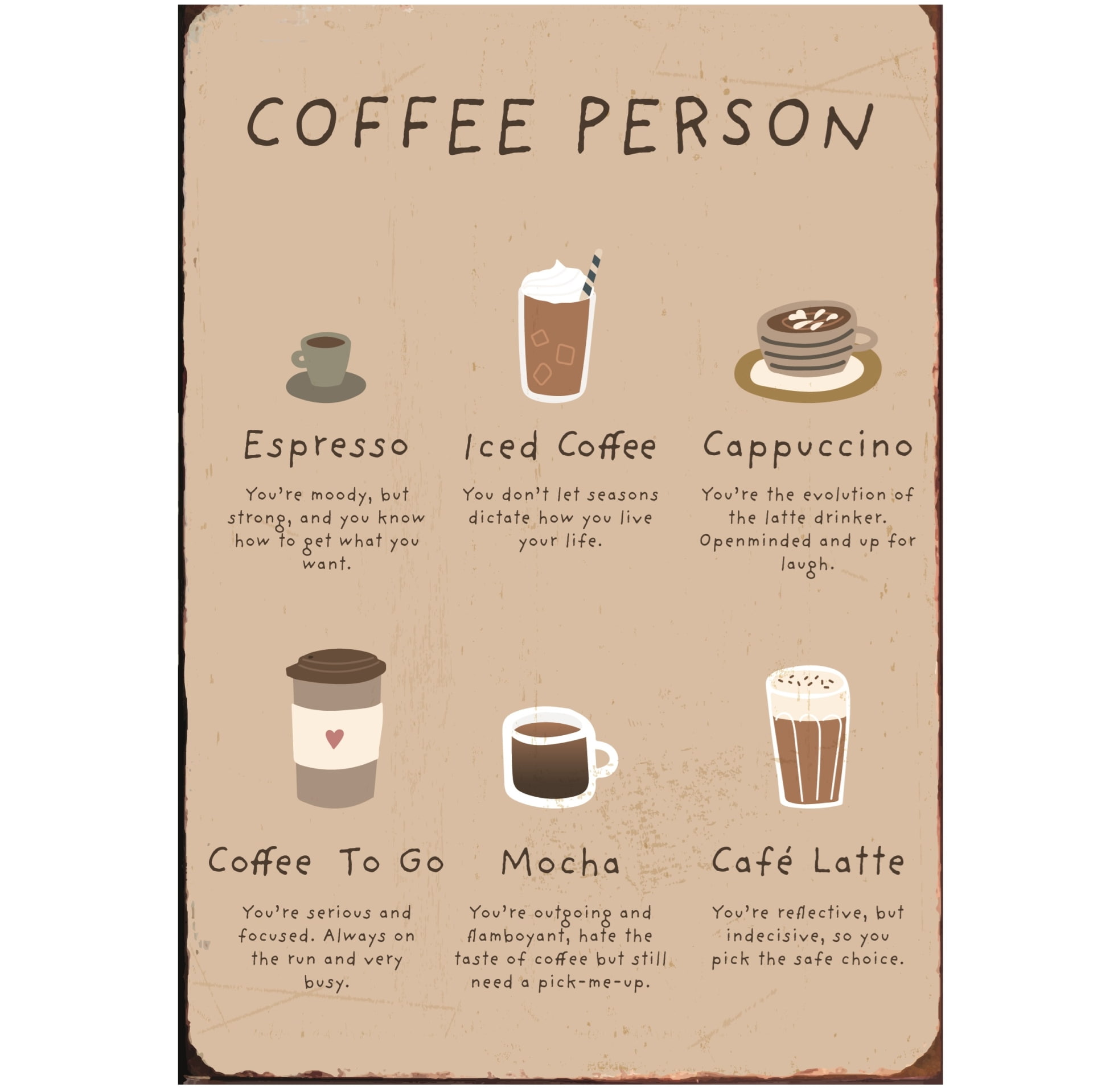 Ib Laursen Plechová cedule Coffee Person, béžová barva, kov. Milujete kávu všeho druhu? Cappuccino, espresso, kávu s sebou na procházku nebo s kostkami ledu? S touto cedulí teď zjistíte, co to o vás vypovídá. Skvělá dekorace ke kávovaru, která nesmí chybět v kuchyni žádného kafeholika, je tato cedule od dánské značky Ib Laursen.