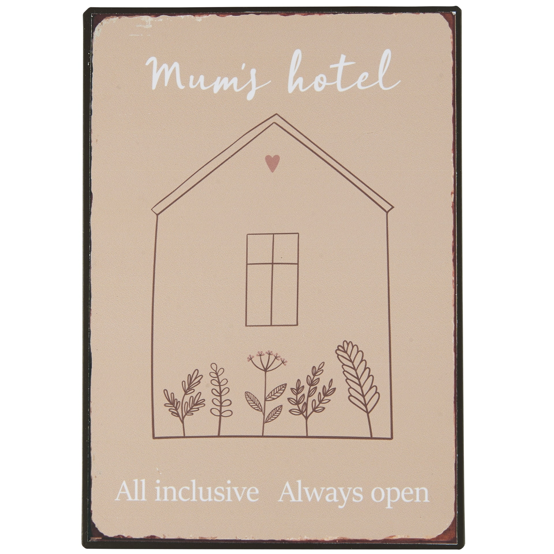Ib Laursen Plechová cedule Mum's Hotel, béžová barva, kov. Děti roztou jako z vody, že? Pokud právě nastala ta chvíle, kdy se vaše děti rozhodli postavit na vlastní nohy a chystají se odstěhovat, není lepší dárek, než vtipná plechová cedule "Mum's Hotel", která nejlépe vystihne, že mají dveře u rodičů vždy dokořán. A přiznejme si, lépe to vystihnout ani není možné. Nejkrásnější All Inclusive na světě.