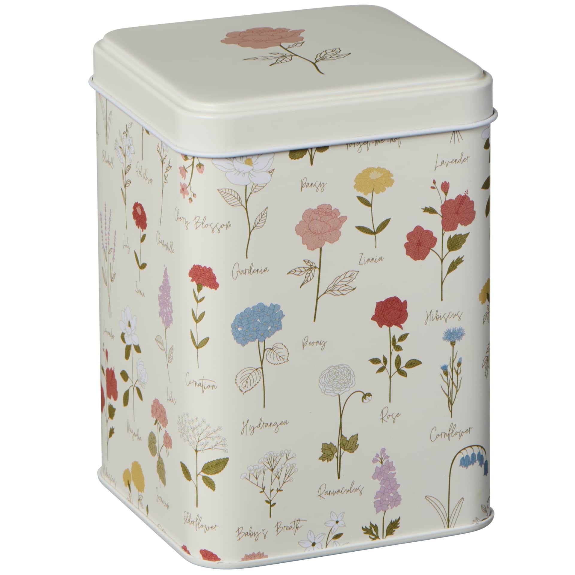 Plechová dóza s víkem v motivu květin z babiččiny zahrádky se perfektně hodí pro skladování sušenek v kuchyni, na drobné kancelářské potřeby ve vaší domácí pracovně a nebo na tajné poklady v dětském pokojíčku.