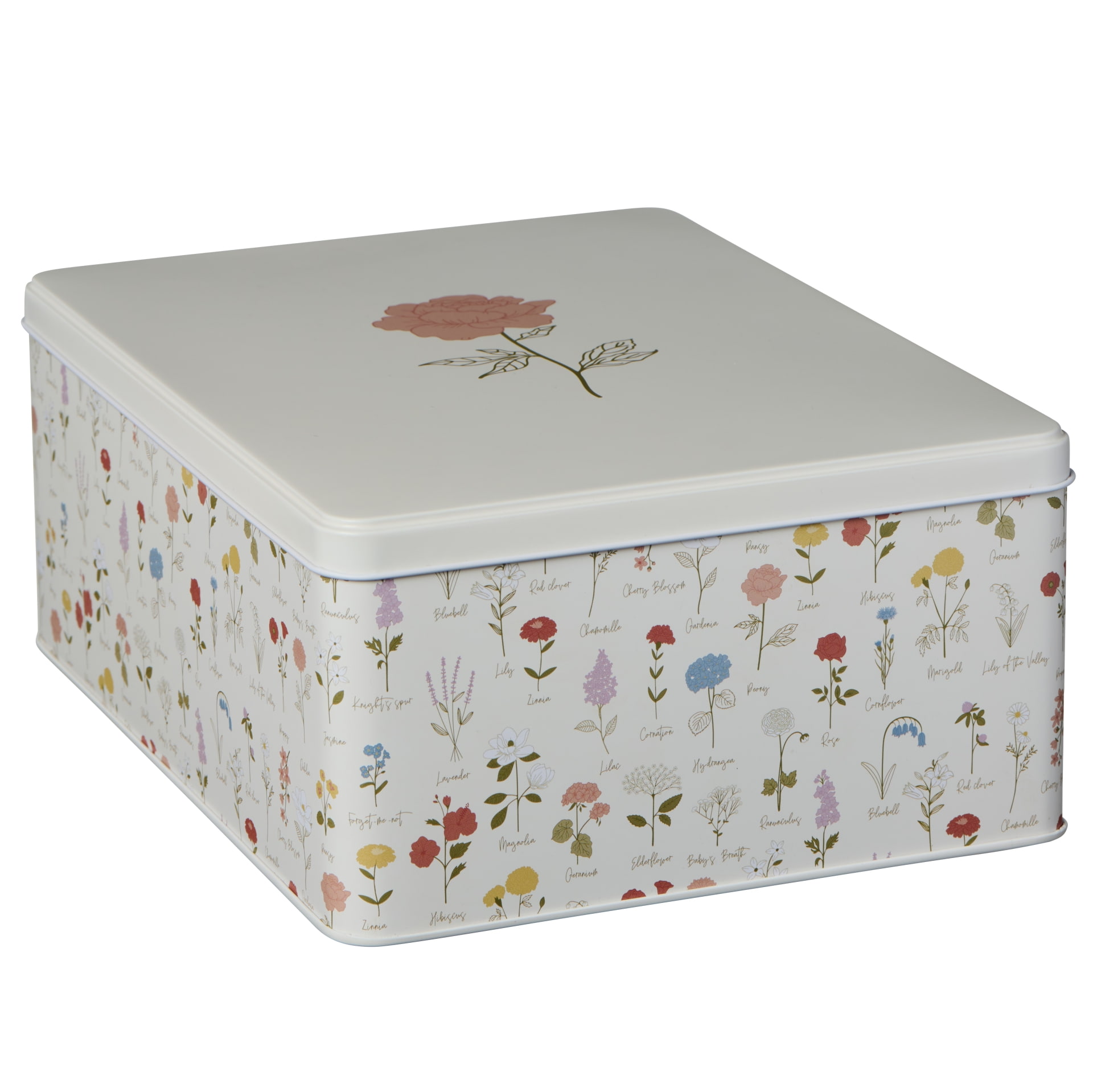 Plechová dóza s víkem v motivu květin z babiččiny zahrádky se perfektně hodí pro skladování sušenek v kuchyni, na drobné kancelářské potřeby ve vaší domácí pracovně a nebo na tajné poklady v dětském pokojíčku.