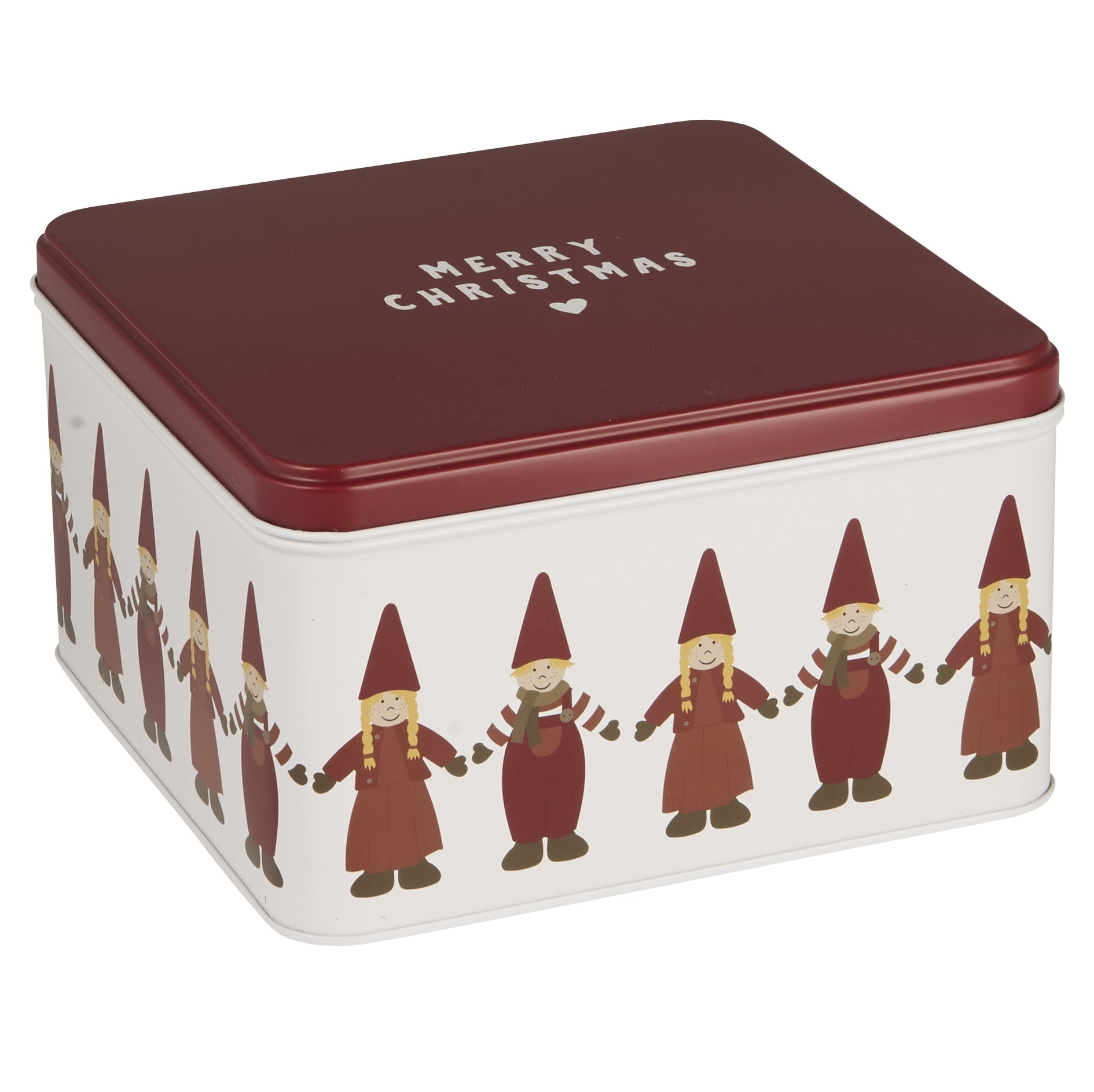 Ib Laursen Plechová dóza Santa's Helpers Square, červená barva, kov. Vaše oblíbené druhy cukroví si zaslouží mít svoji vlastní dózu, ve které budou odpočívat, dokud nepřijde jejich čas.