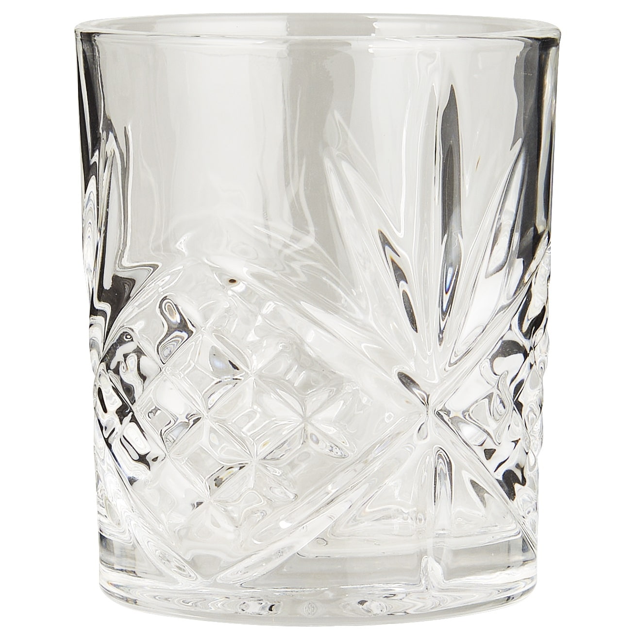Sklenice má robustní stěny a silnější dno, tím získává větší hmotnost. Elegantní rysy sklenice získala díky reliéfnímu dekoru, zdobícího sklenici kolem dokola, věrohodně připomínající broušené sklo.