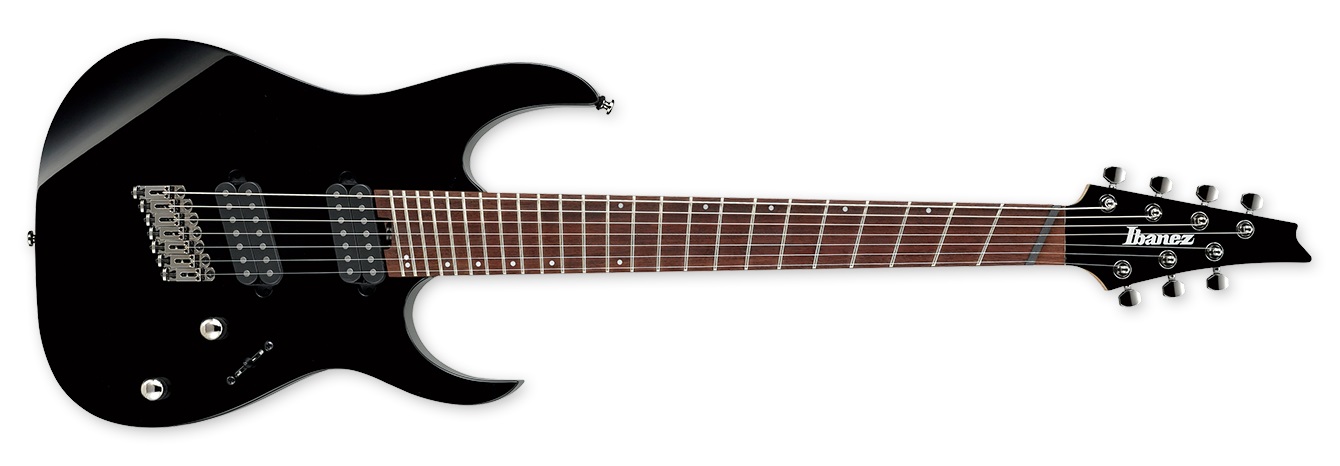 Elektrická sedmistrunná kytara Elektrické kytary z řady RG japonské značky Ibanez patří k vůbec nejznámějším nástrojům tohoto typu. Jejich plošší rychlý krk, nižší hmotnost a výrazné výřezy se stylově špičatými rohy jsou důvodem jejich mimořádné obliby mezi rockovými a metalovými kytaristy. Sedmistrunná kytara RGMS7 Black je multiscale model s proměnlivou menzurou 648 - 686 mm. Tělo kytary je zhotoveno ze dřeva nyatoh. K rychlému javorovému krku s profilem Wizard III-7 je přilepen hmatník z