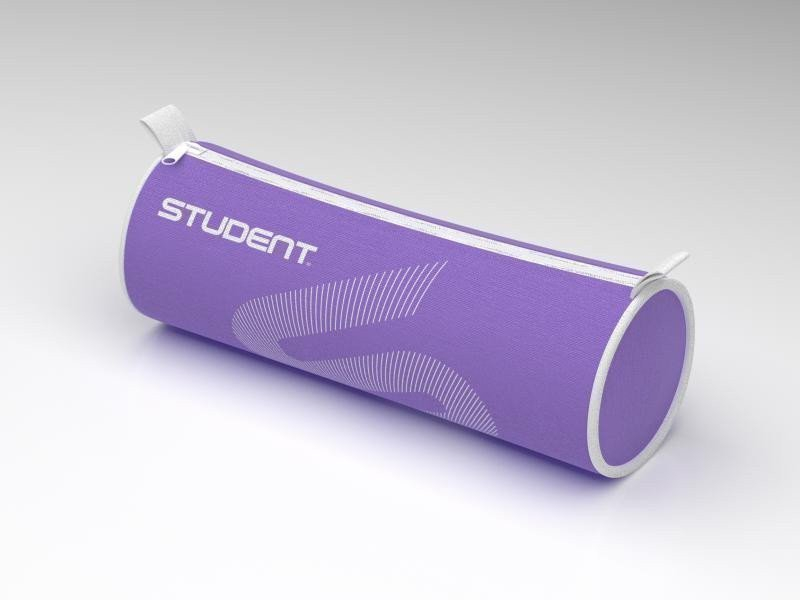 Textilní penál pro psací potřeby v klasickém tvaru je potištěn logem Student. Etue na zip je opatřena dvěma malými poutky. Průměr 7 cm, délka 20 cm. Lze prát v ruce do max. 40 °C.