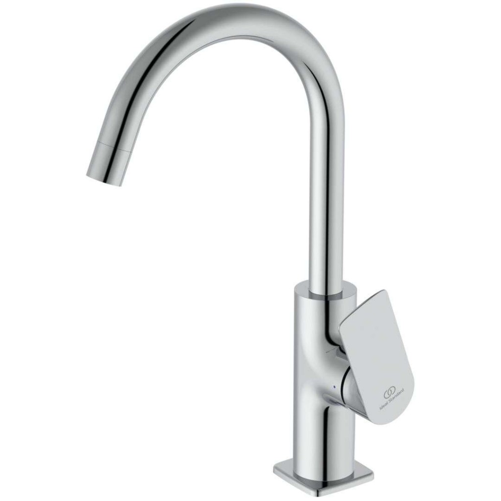 Umyvadlová baterie s otočným ramínkem provedení: chrom materiál: mosaz výška baterie: 301 mm délka výtoku: 150 mm komfortní zóna: 215 mm stojánkové provedení s otočným výtokem - o 360° se skrytým perlátorem průtok 3,8 l/min při tlaku 3 bar kovová páka se značením teplé a studené vody FirmaFlow keramická kartuše 28 mm, integrovaný omezovač teploty EasyFix - snadná instalace SmartShine - povrchová úprava pro snadnější čištění flexibilní hadice: 2x G3/8" bez výpusti