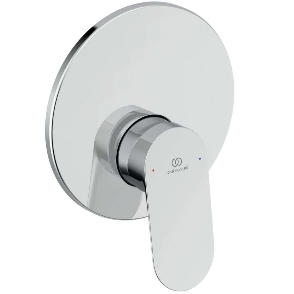 Podomítková sprchová baterie provedení: chrom materiál: mosaz podomítková instalace kruhová krycí rozeta, průměr 163 mm SmartShine - povrchová úprava pro snadnější čištění FirmaFlow keramická kartuše 47 mm kovová páka se značením teplé a studené vody včetně podomítkového tělesa připojení G1/2