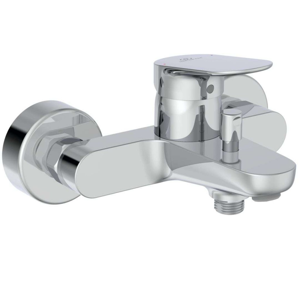 Nástěnná vanová baterie provedení: chrom materiál: mosaz rozteč: 150 mm pákové ovládání (úhel otočení 50° do obou stran) s červeným a modrým indikátorem kruhové rozety, průměr: 70 mm se zpětným ventilem automatický přepínač sprcha/vana s perlátorem SmartShine - povrchová úprava pro snadnější čištění FirmaFlow keramická kartuše 38 mm s regulací teploty horké vody s-přípojky pro úpravu rozteče +-23 mm ILUSTRAČNÍ FOTO