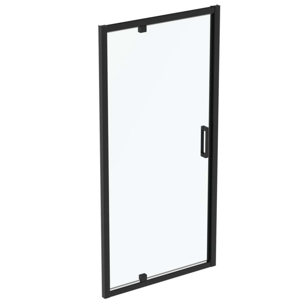 Pivotové sprchové dveře do niky nebo pro kombinaci s pevnou stěnou reversibilní provedení rozměr: 900 x 1955 mm nastavení: 870 - 920 mm bezpečnostní sklo, tloušťka 6 mm výplň: čiré sklo profily: hedvábná černá dodáváno s úpravou Ideal Clean masivní rukojeť: 225 mm horizontální nastavení: 25 mm na profil je možné kombinovat se sprchovými vaničkami nebo instalovat přímo na dlaždice Lze instalovat samostatně do niky nebo v kombinaci s pevnou boční stěnou.