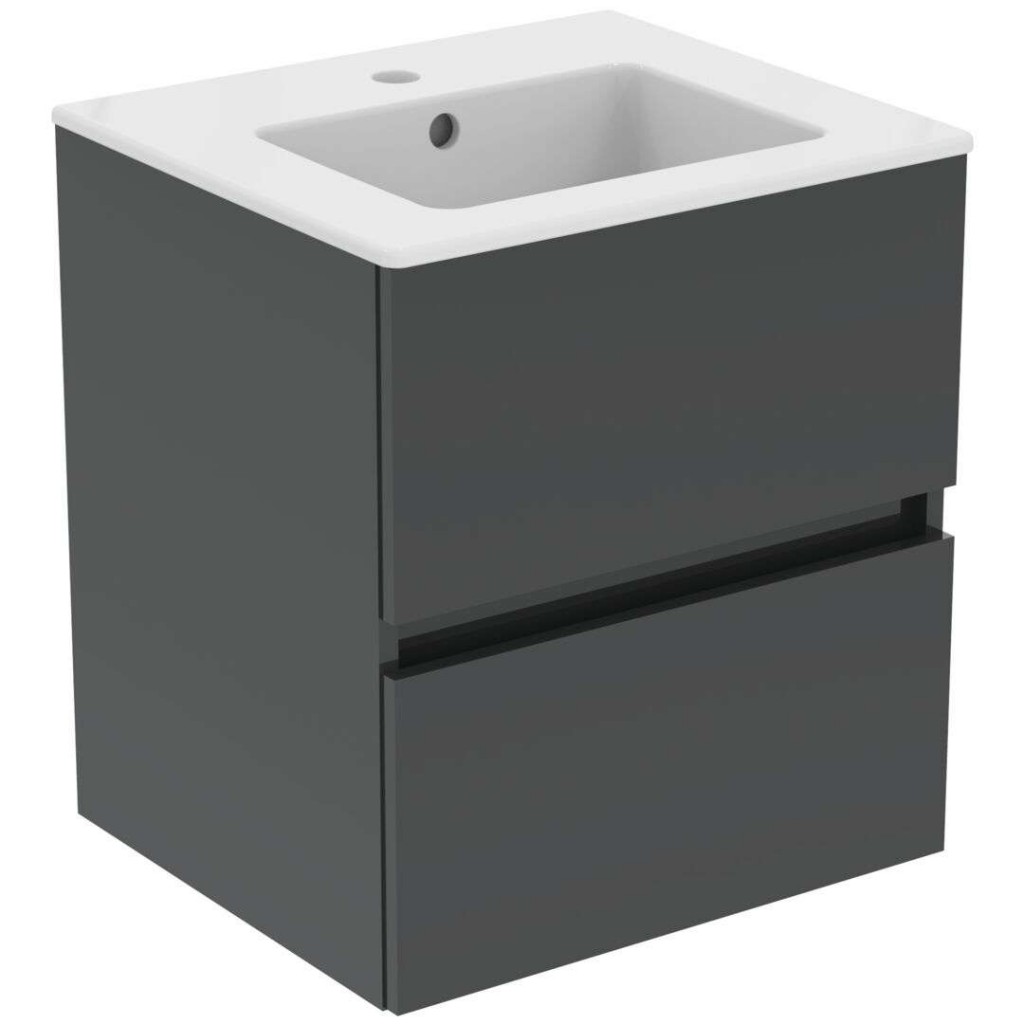 Nástěnná skříňka s umyvadlem Eurovit + barva skříňky: lesklá šedá materiál skříňky: MFC - dřevotříska rozměr skříňky: 550 x 500 x 440 mm (VxŠxH) 2 x zásuvka systém tichého dovírání Soft Close instalace zavěšením na zeď dodáváno smontované barva umyvadla: bílá materiál umyvadla: sanitární keramika rozměr umyvadla: 155 x 510 x 450 mm (VxŠxH) 1 otvor pro baterii s přepadem s odkládací plochou