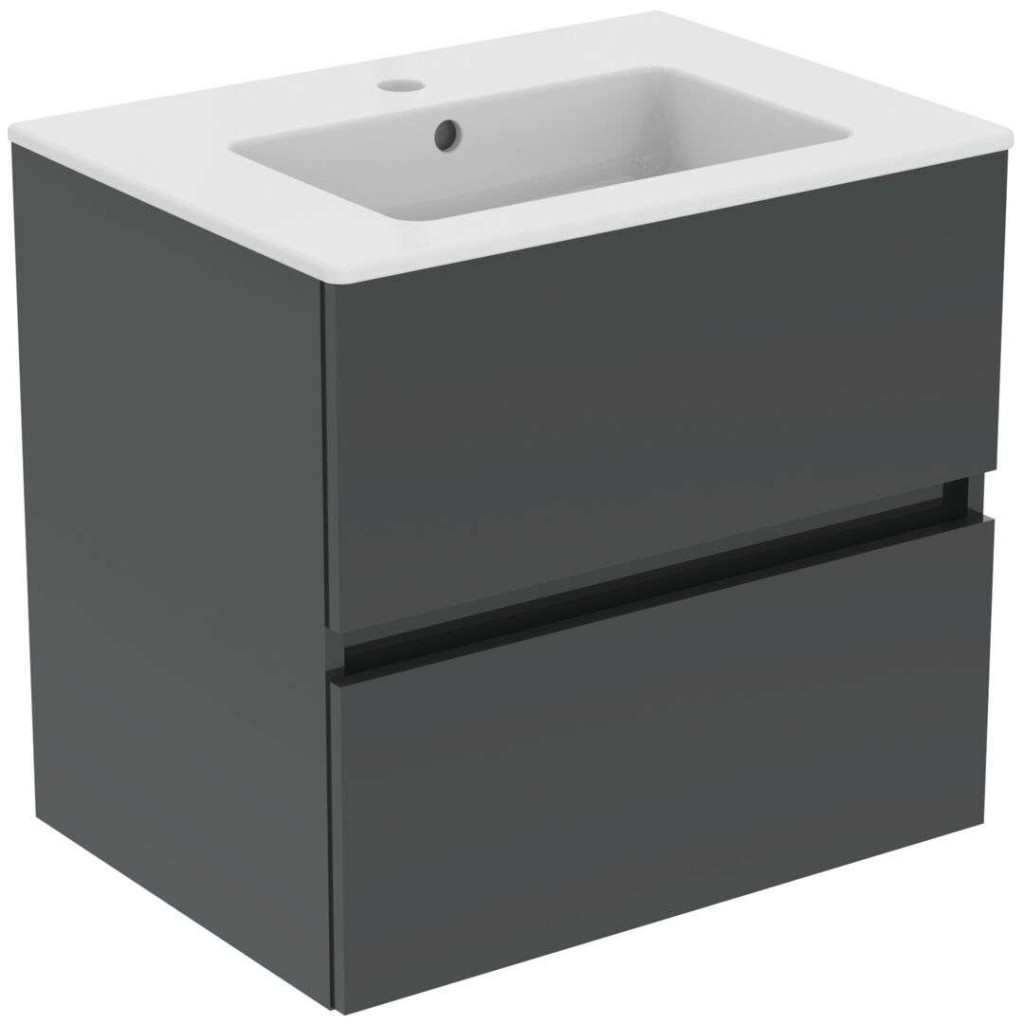 Nástěnná skříňka s umyvadlem Eurovit + barva skříňky: lesklá šedá materiál skříňky: MFC - dřevotříska rozměr skříňky: 550 x 600 x 440 mm (VxŠxH) 2 x zásuvka systém tichého dovírání Soft Close instalace zavěšením na zeď dodáváno smontované barva umyvadla: bílá materiál umyvadla: sanitární keramika rozměr umyvadla: 140 x 610 x 450 mm (VxŠxH) 1 otvor pro baterii s přepadem s odkládací plochou