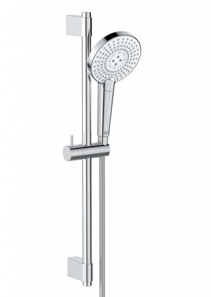 Evo Jet CIRCLE sprchový set kulaté ruční sprchy průměr hlavice: 125 mm průtok při 3 barech 8 l/min 3 druhy proudu: déšť, masážní proud, perličková sprcha přepínání proudů stisknutím tlačítka funkce Anti-Kalk zamezuje ukládání vodního kamene připojovací závit G1/2 povrchová úprava: chrom sprchové hadice Idealflex délka: 1750 mm provedení: plast, stříbrná barva připojovací závit G1/2xG1/2 sprchové tyče Idealrain Pro sprchová tyč s posuvným kovovým držákem sprchy délka tyče: 600 mm kovové upevnění na stěnu snadná instalace ilustrativní foto
