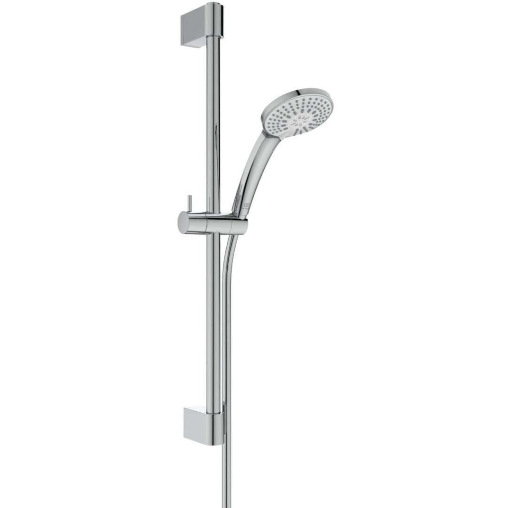 Nástěnná sprchová souprava obsahuje ruční sprchu průměr: 100 mm pochromováno 3 proudy: malý déšť / masáž / déšť široký proud maximální průtok (při tlaku 3 bar): 8 l/min Easy to Clean technologie pro snadnou údržbu silikonových trysek úspora vody sprchovou hadici délka hadice: 1750 mm materiál: kov pochromována hladký lesklý povrch s funkcí proti kroucení SmartShine - snadná údržba připojovací závit G1/2 nastavitelnou nástěnnou tyč s držákem sprchy celková výška: 644 mm rozteč šroubů: max. 623 mm s posuvným držákem ruční sprchy včetně upevňovacího materiálu