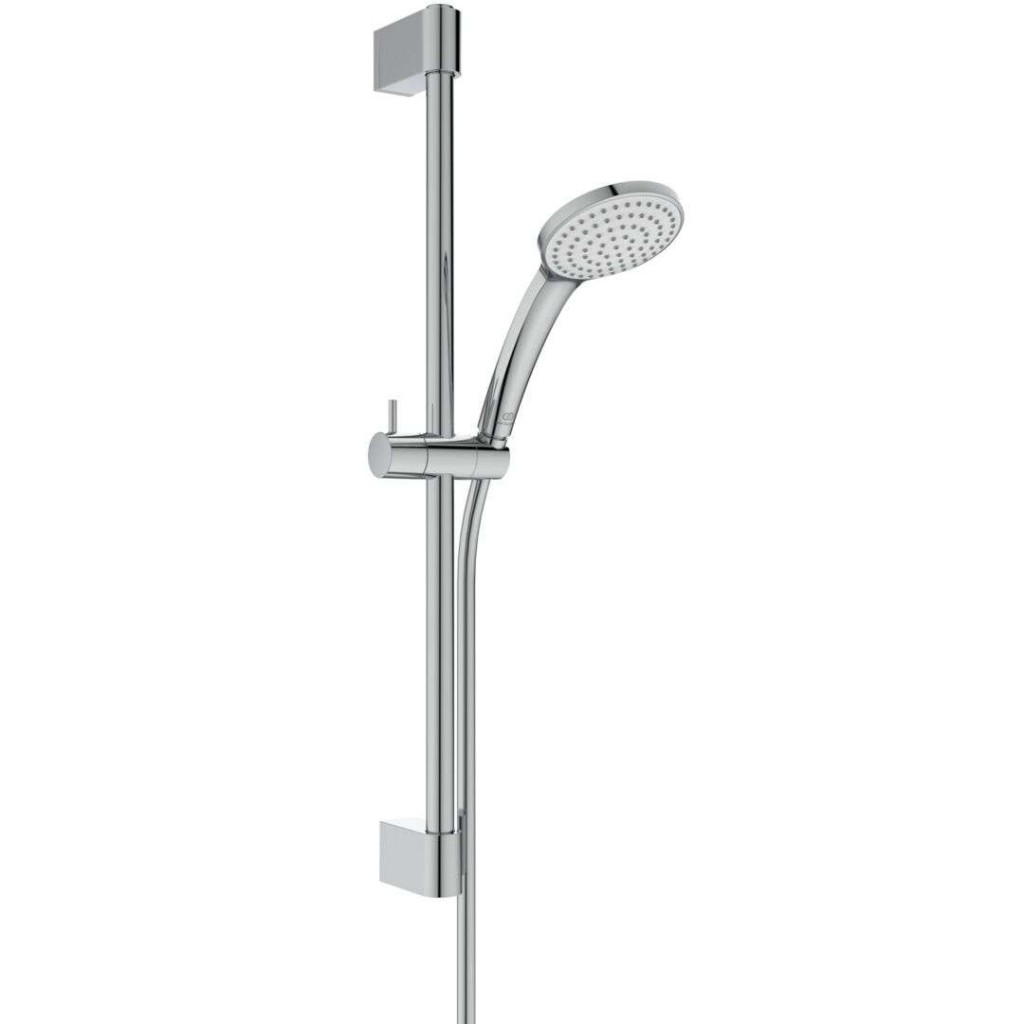 Nástěnná sprchová souprava, chrom obsahuje ruční sprchu průměr: 100 mm 1 proud: déšť široký proud maximální průtok (při tlaku 3 bar): 8 l/min SmartShine technologie - snadná údržba úspora vody sprchovou hadici délka hadice: 1750 mm materiál: kov pochromována hladký lesklý povrch s funkcí proti kroucení SmartShine technologie - snadná údržba připojovací závit G1/2 nastavitelnou nástěnnou tyč s držákem sprchy celková výška: 644 mm rozteč šroubů: max. 623 mm s posuvným držákem ruční sprchy včetně upevňovacího materiálu