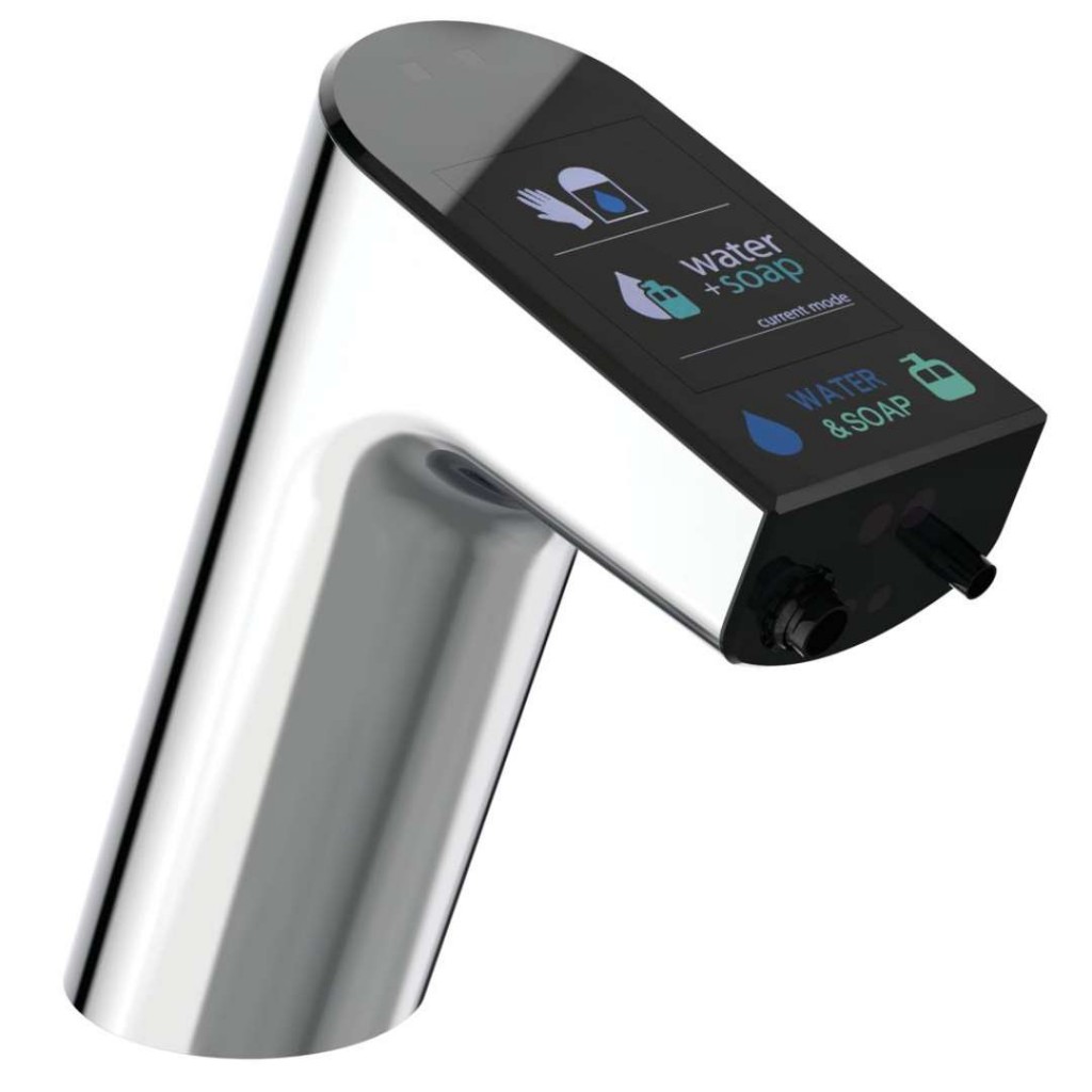 Bezdotyková umyvadlová baterie s integrovaným dávkovačem tekutého mýdla - zkrácená doba mytí a nižší náklady jednootvorová montáž provedení: chrom bez směšování teplé a studené vody s napájecím zdrojem 100-230 V AC, 50-60 Hz, 6 V DC integrovaný dávkovač mýdla na mýdlovou pěnu automatický proplach vody a mýdla, termická dezinfekce, režim čistění výrobek je určen pouze pro použití ve vysokotlakých systémech (min. 0,5 bar) díky omezovači průtoku šetří vodu - 2 l/min nastavitelný výtok vody s technologií Cool Body a IdealBlue s digitálním displejem, který zobrazuje mycí proces, lze na něm zobrazit i vaše logo baterie mísí mýdlo se vzduchem a vytváří tak jemnou pěnu tekuté mýdlo není součástí dodávky, doporučená viskozita mýdla 100 – 3800 cPs snadné ovládání baterie díky aplikaci na míru pro systémy Android a iOS lze si upravit parametry, jako je nastavení mýdla a cyklus mytí rukou, aby vyhovovaly měnícím se potřebám, a také řídit frekvenci automatického proplachování umožňuje sledovat výkon a dostávat upozornění, když je málo spotřebního materiálu – to vše pomáhá významně šetřit vodu a mýdlo Digitální cyklus mytí rukou digitální displej instruuje uživatele, aby si po dobu 5 sekund oplachoval ruce následuje automatické dávkování mýdla na mytí rukou mýdlem je nastaven čas 20 sekund pro opláchnutí rukou je proud vody opět spuštěn po dobu 10 sekund Vhodné pro připojení k samostatnému termostatu nebo mikrotermostatu (nutno zakoupit samostatně).