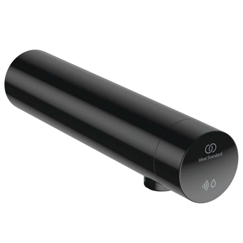 Umyvadlová senzorová baterie barva černý onyx nástěnná montáž bez směšování pro studenou nebo míchanou vodu mosazné tělo délka výtoku 170 mm celková délka baterie 220 mm obsahuje těsnění pro ochranu stěny kovový kryt, vepředu – anti-vandal upevnění (lze otevřít pro údržbu baterie a ventilu) integrovaný infračervený senzor Zapnuto-Vypnuto se selonoid ventilem instalovaným v armatuře 6 V lithiová baterie integrovaná do těla laminární perlátor M24x1 s omezovačem průtoku na 5 l/min PCA výrobek je určen pouze pro použití ve vysokotlakých systémech (min. 0,5 bar)