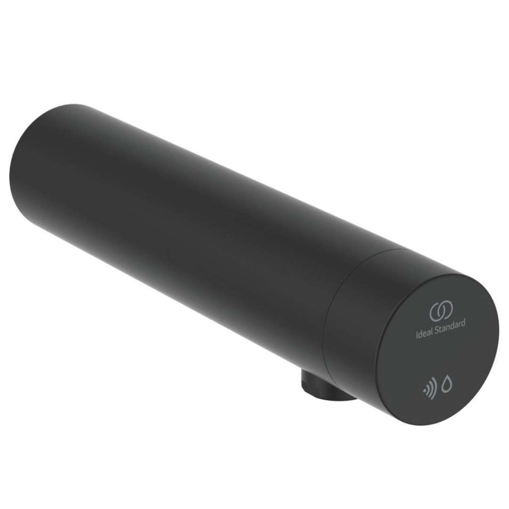 Umyvadlová senzorová baterie na panel provedení: hedvábná černá nástěnná montáž bez směšování mosazné tělo délka vývodu 170 mm celková délka baterie 220 mm obsahuje těsnění pro ochranu stěny kovový kryt, vepředu – anti-vandal upevnění (lze otevřít pro údržbu baterie a ventilu) integrovaný infračervený senzor Zapnuto-Vypnuto s selonoid ventilem instalovaným v armatuře flexibilní hadice pro přívod vody stopkové uchycení armatury 6V lithiová baterie integrovaná do těla kovový adaptér G1/2 pro přívod vody laminární perlátor M24x1 s omezovačem průtoku na 5 l/min PCA výrobek je určen pouze pro použití ve vysokotlakých systémech (min. 0,5 bar)