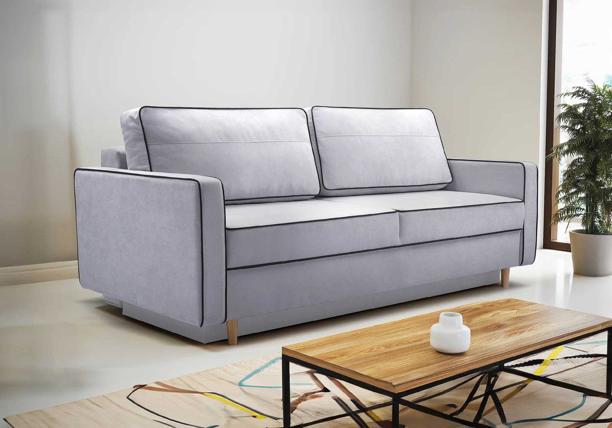 Pohovka Fasta • Vlastnosti: Materiál Kostra pohovky je vyrobena z masivního dřeva a dřevotřískových desek. Výplň sedáku a opěradla Na výplň jsou použity bonell pružiny, které jsou doplněny o pěnu T30. Nožičky Pohovka stojí na dřevěných nožičkách. Čalouněná záda Díky čalouněným zádům můžete pohovku umístit i do prostoru. • Úložný prostorPohovka Fasta je vybavena praktickým úložným prostorem umístěným pod sedákem. Tento úložný prostor je snadno přístupný a nabízí dostatek místa pro uschování polštářů, přikrývek a dalších předmětů, které si přejete mít pohodlně po ruce. • Rozklad na lůžkoPřeměna pohovky na lůžko je velice snadná. Po otevření úložného prostoru stačí sklopit záda. Vytvoří se vám ložná spací plocha pro příležitostné přespání. • Rozměry pohovky 213 cm celková šířka 94 cm celková výška 100 cm celková hloubka 45 cm výška sedáku 152 x 190 cm spací plocha • Potahová látka ParosLátka PAROS je označována jako sametová látka, která je velice jemná a hebká na dotek. I přes svou jemnou strukturu je látka dostatečná pevná, odolná vůči dennímu světlu a UV záření. Dále je látka také odolná proti oděru a nežmolkovatí. • UpozorněníLátky prezentované na fotografiích jsou ilustračním materiálem, barvy se mohou lišit od vyobrazení na fotografiích podle nastavení vašeho zobrazovacího zařízení.