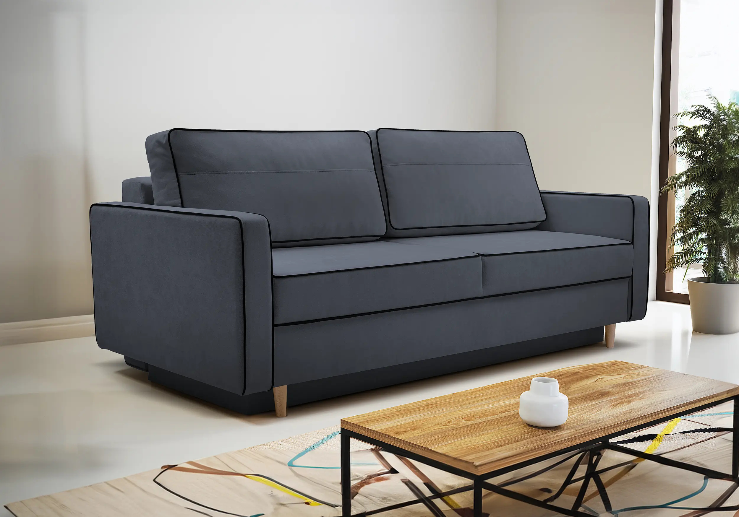 Pohovka Fasta • Vlastnosti: Materiál Kostra pohovky je vyrobena z masivního dřeva a dřevotřískových desek. Výplň sedáku a opěradla Na výplň jsou použity bonell pružiny, které jsou doplněny o pěnu T30. Nožičky Pohovka stojí na dřevěných nožičkách. Čalouněná záda Díky čalouněným zádům můžete pohovku umístit i do prostoru. • Úložný prostorPohovka Fasta je vybavena praktickým úložným prostorem umístěným pod sedákem. Tento úložný prostor je snadno přístupný a nabízí dostatek místa pro uschování polštářů, přikrývek a dalších předmětů, které si přejete mít pohodlně po ruce. • Rozklad na lůžkoPřeměna pohovky na lůžko je velice snadná. Po otevření úložného prostoru stačí sklopit záda. Vytvoří se vám ložná spací plocha pro příležitostné přespání. • Rozměry pohovky 213 cm celková šířka 94 cm celková výška 100 cm celková hloubka 45 cm výška sedáku 152 x 190 cm spací plocha • Potahová látka ParosLátka PAROS je označována jako sametová látka, která je velice jemná a hebká na dotek. I přes svou jemnou strukturu je látka dostatečná pevná, odolná vůči dennímu světlu a UV záření. Dále je látka také odolná proti oděru a nežmolkovatí. • UpozorněníLátky prezentované na fotografiích jsou ilustračním materiálem, barvy se mohou lišit od vyobrazení na fotografiích podle nastavení vašeho zobrazovacího zařízení.