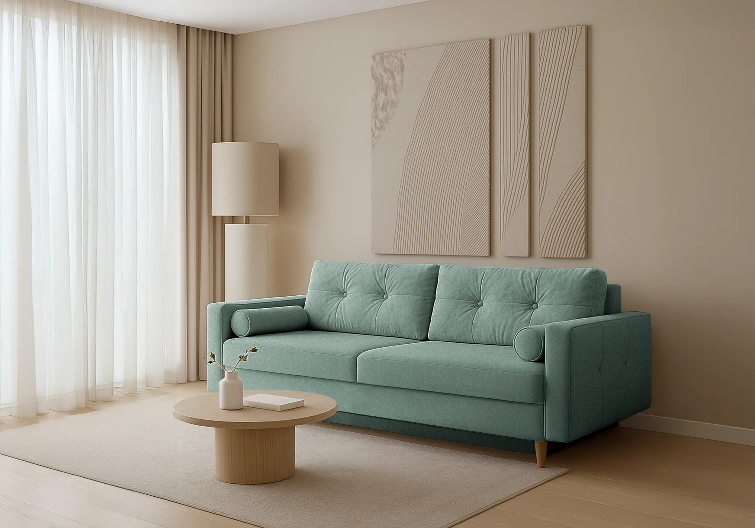 Pohovka Pastella • Vlastnosti: Materiál Kostra pohovky je vyrobena z masivního dřeva a dřevotřískových desek. Výplň sedáku a opěradla Na výplň jsou použity bonell pružiny, které jsou doplněny o pěnu T30. Nožičky Pohovka stojí na dřevěných nožičkách. Čalouněná záda Díky čalouněným zádům můžete pohovku umístit i do prostoru. • Úložný prostorPohovka Pastella je vybavena praktickým úložným prostorem umístěným pod sedákem. Tento úložný prostor je snadno přístupný a nabízí dostatek místa pro uschování polštářů, přikrývek a dalších předmětů, které si přejete mít pohodlně po ruce. • Rozklad na lůžkoPřeměna pohovky na lůžko je velice snadná. Po otevření úložného prostoru stačí sklopit záda. Vytvoří se vám ložná spací plocha pro příležitostné přespání. • Rozměry pohovky 213 cm celková šířka 83 cm celková výška 98 cm celková hloubka 153 x 189 cm spací plocha • Potahová látka QueensQUEENS je moderní čalouněný materiál, který se vyznačuje mimořádnou jemností. Jeho povrch je příjemný, hladký a jemný na dotek. Tento materiál splňuje přísná evropská nařízení ohledně škodlivých chemických látek (REACH).Materiál QUEENS je certifikován dle standardu Oeko-Tex, který garantuje vysokou kvalitu výrobků a zajišťuje, že neobsahují žádné škodlivé látky pro člověka. Tento certifikát je uznávanou bezpečnostní značkou pro textilní výrobky.Tkanina je vyrobena speciální technologií, která omezuje absorpci kapalin. Pokud se na ni rozlije tekutina, kapky se hromadí na povrchu látky. Zašpiněné místo lze jednoduše otřít hadříkem. • UpozorněníLátky prezentované na fotografiích jsou ilustračním materiálem, barvy se mohou lišit od vyobrazení na fotografiích podle nastavení vašeho zobrazovacího zařízení.