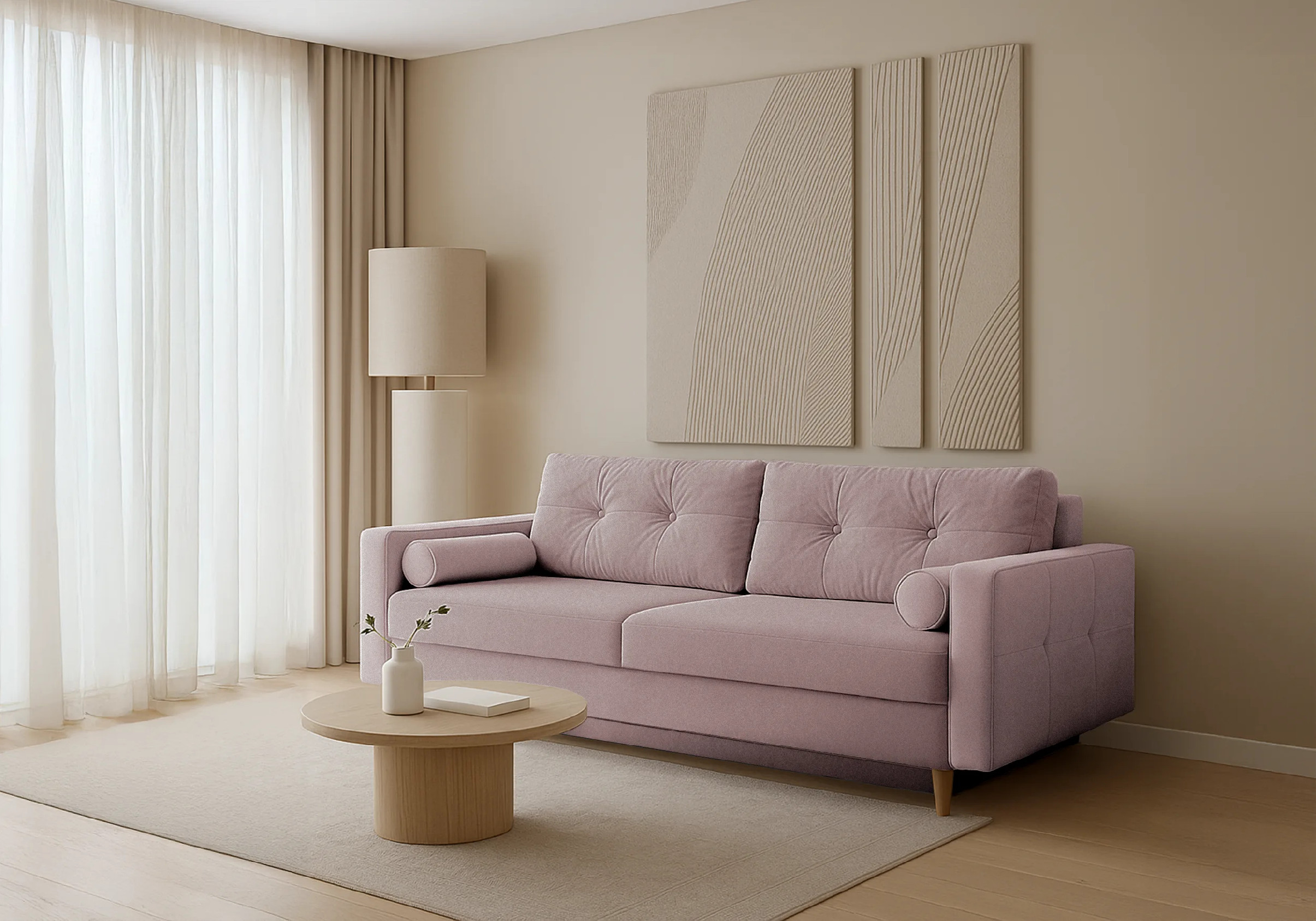 Pohovka Pastella • Vlastnosti: Materiál Kostra pohovky je vyrobena z masivního dřeva a dřevotřískových desek. Výplň sedáku a opěradla Na výplň jsou použity bonell pružiny, které jsou doplněny o pěnu T30. Nožičky Pohovka stojí na dřevěných nožičkách. Čalouněná záda Díky čalouněným zádům můžete pohovku umístit i do prostoru. • Úložný prostorPohovka Pastella je vybavena praktickým úložným prostorem umístěným pod sedákem. Tento úložný prostor je snadno přístupný a nabízí dostatek místa pro uschování polštářů, přikrývek a dalších předmětů, které si přejete mít pohodlně po ruce. • Rozklad na lůžkoPřeměna pohovky na lůžko je velice snadná. Po otevření úložného prostoru stačí sklopit záda. Vytvoří se vám ložná spací plocha pro příležitostné přespání. • Rozměry pohovky 213 cm celková šířka 83 cm celková výška 98 cm celková hloubka 153 x 189 cm spací plocha • Potahová látka QueensQUEENS je moderní čalouněný materiál, který se vyznačuje mimořádnou jemností. Jeho povrch je příjemný, hladký a jemný na dotek. Tento materiál splňuje přísná evropská nařízení ohledně škodlivých chemických látek (REACH).Materiál QUEENS je certifikován dle standardu Oeko-Tex, který garantuje vysokou kvalitu výrobků a zajišťuje, že neobsahují žádné škodlivé látky pro člověka. Tento certifikát je uznávanou bezpečnostní značkou pro textilní výrobky.Tkanina je vyrobena speciální technologií, která omezuje absorpci kapalin. Pokud se na ni rozlije tekutina, kapky se hromadí na povrchu látky. Zašpiněné místo lze jednoduše otřít hadříkem. • UpozorněníLátky prezentované na fotografiích jsou ilustračním materiálem, barvy se mohou lišit od vyobrazení na fotografiích podle nastavení vašeho zobrazovacího zařízení.