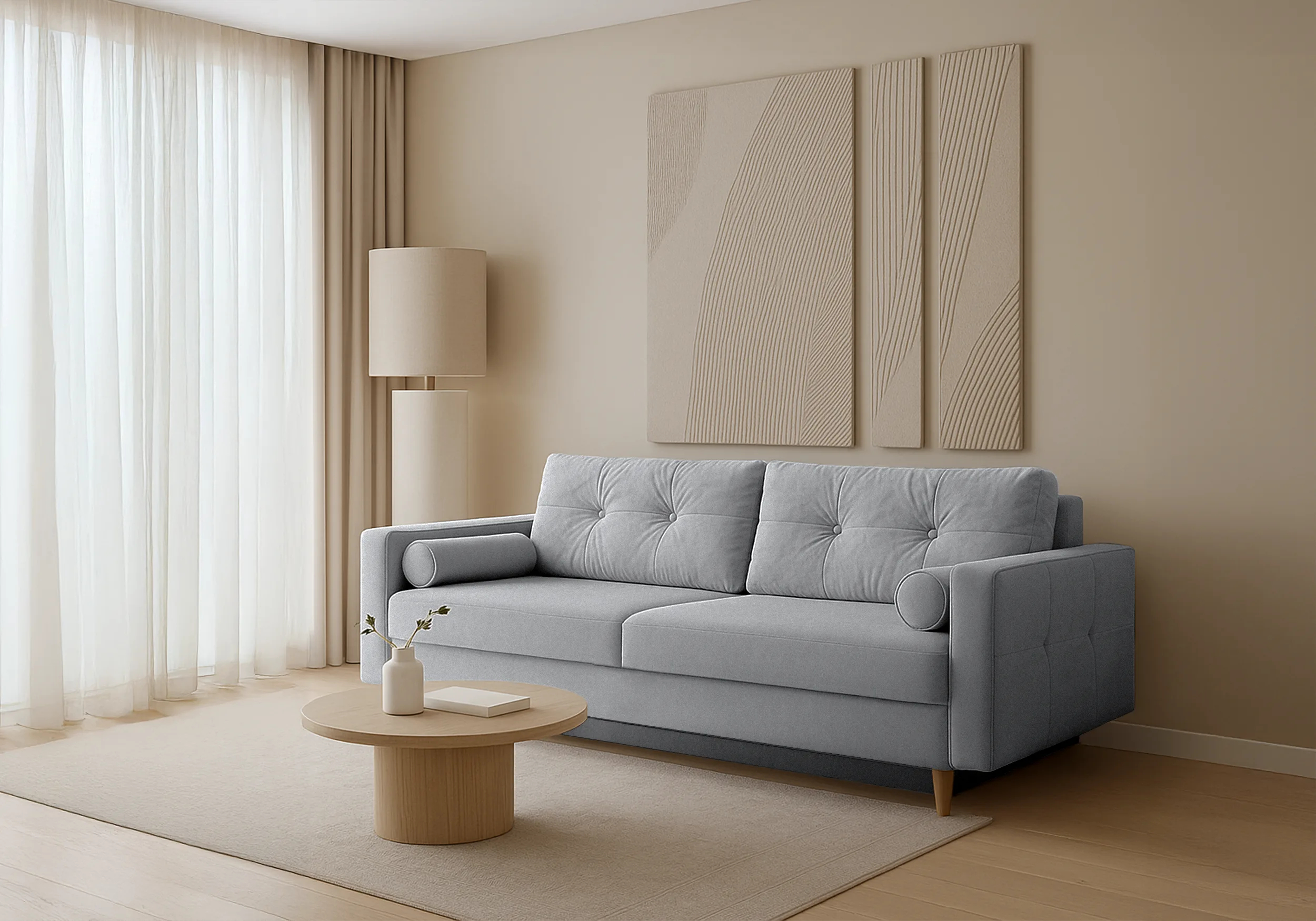 Pohovka Pastella • Vlastnosti: Materiál Kostra pohovky je vyrobena z masivního dřeva a dřevotřískových desek. Výplň sedáku a opěradla Na výplň jsou použity bonell pružiny, které jsou doplněny o pěnu T30. Nožičky Pohovka stojí na dřevěných nožičkách. Čalouněná záda Díky čalouněným zádům můžete pohovku umístit i do prostoru. • Úložný prostorPohovka Pastella je vybavena praktickým úložným prostorem umístěným pod sedákem. Tento úložný prostor je snadno přístupný a nabízí dostatek místa pro uschování polštářů, přikrývek a dalších předmětů, které si přejete mít pohodlně po ruce. • Rozklad na lůžkoPřeměna pohovky na lůžko je velice snadná. Po otevření úložného prostoru stačí sklopit záda. Vytvoří se vám ložná spací plocha pro příležitostné přespání. • Rozměry pohovky 213 cm celková šířka 83 cm celková výška 98 cm celková hloubka 153 x 189 cm spací plocha • Potahová látka QueensQUEENS je moderní čalouněný materiál, který se vyznačuje mimořádnou jemností. Jeho povrch je příjemný, hladký a jemný na dotek. Tento materiál splňuje přísná evropská nařízení ohledně škodlivých chemických látek (REACH).Materiál QUEENS je certifikován dle standardu Oeko-Tex, který garantuje vysokou kvalitu výrobků a zajišťuje, že neobsahují žádné škodlivé látky pro člověka. Tento certifikát je uznávanou bezpečnostní značkou pro textilní výrobky.Tkanina je vyrobena speciální technologií, která omezuje absorpci kapalin. Pokud se na ni rozlije tekutina, kapky se hromadí na povrchu látky. Zašpiněné místo lze jednoduše otřít hadříkem. • UpozorněníLátky prezentované na fotografiích jsou ilustračním materiálem, barvy se mohou lišit od vyobrazení na fotografiích podle nastavení vašeho zobrazovacího zařízení.