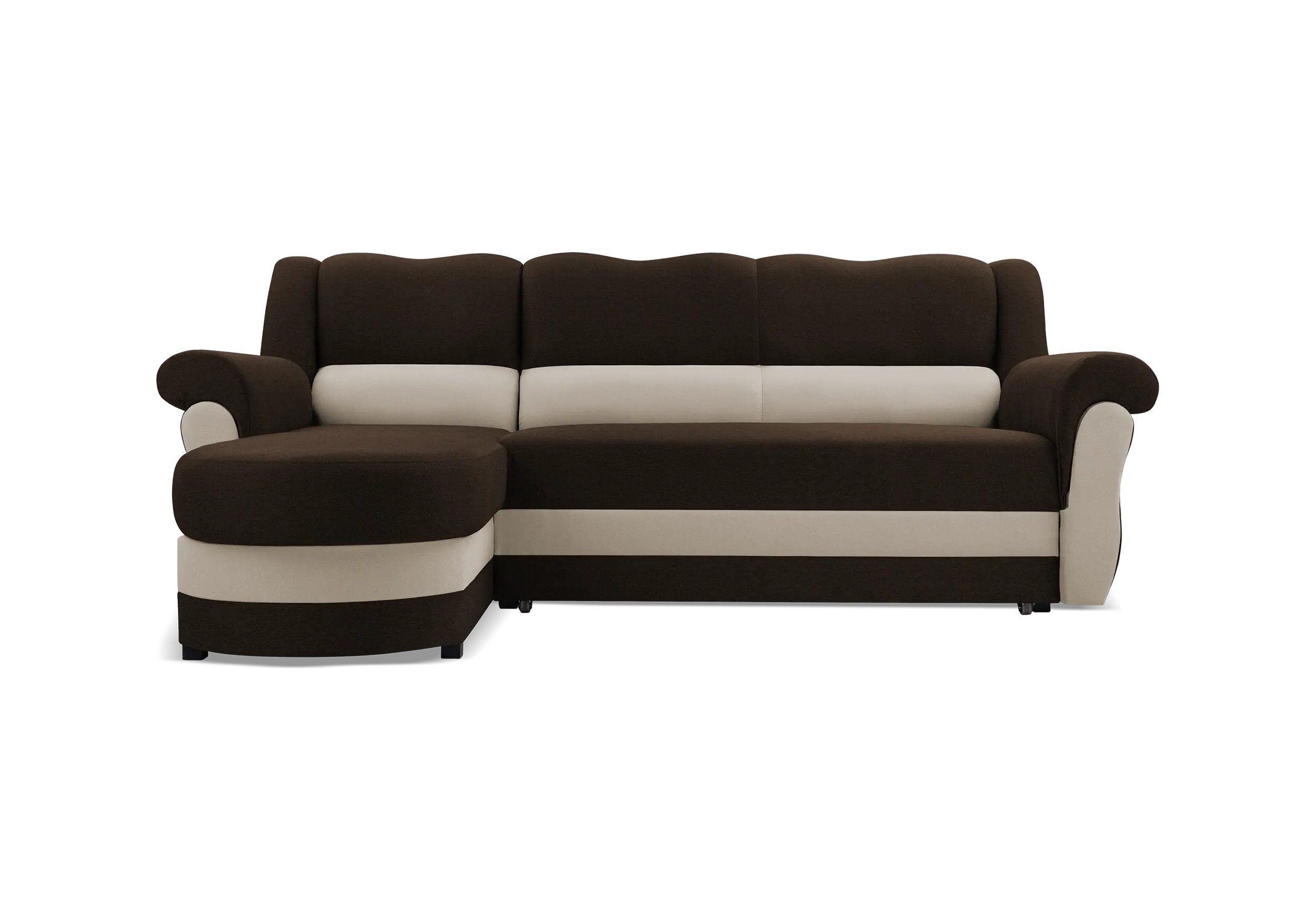 Sedací souprava Bruno Sedací souprava Bruno je ideální volbou pro ty, kteří hledají stylový a praktický nábytek v jednom. Sedačka Bruno se tak stane středem veškerého dění. • Vlastnosti: Kostra sedací soupravy Kostra je vyrobena z masivního dřeva a dřevotřísky. Výplň sedáků a opěradel Sedáky a opěradla jsou vyplněny pružinami Faliste a Bonell spolu s elastickou pěnou T30. Funkce sedací soupravy Sedací souprava nabídne úložný prostor a rozklad pro příležitostné spaní. • Levá varianta Pravá varianta • Rozklad na lůžkoRozkládací mechanismus je jednoduchý a rychlý, což umožňuje snadné přeměnění sedačky na pohodlné lůžko. Rozkládací část je ukryta ve výsuvném šuplíku. Po vytáhnutí se vyzvedne tažením za madlo do výše sedací části, kde vytvoří plochu, na které budou mít dvě osoby dostatek prostoru pro pohodlný odpočinek. • Úložný prostorSedací souprava Bruno nabízí praktický úložný prostor pod otomanem. Tento prostor poskytuje dostatek místa pro uložení věcí a zároveň zůstává skrytý a nenarušuje tak celkový vzhled nábytku. • Podrobné rozměry 240 cm celková šířka 170 cm celková hloubka 124x196 cm plocha na spaní 96 cm celková výška 60 cm hloubka sedáku 44 cm výška sedu • Barevné provedení - kombinace látek Bahama 08 a Bahama 33Tkanina Bahama je odolná potahová látka, která má vysokou odolnost proti oděru a roztržení. Univerzální tkanina na 100% polyesterovém podkladu se zajímavou, hladkou strukturou, která nepodléhá žmolkování. Péče o textilii je snadná. Stačí k tomu suchý, nebo vlhký hadřík a mýdlová voda. Lze ovšem použít i speciální prostředky určené přímo k čištění a péči o čalouněný nábytek. Chemické čištění, či použití bělidla se nedoporučuje. Parametry potahové látky Bahama 100% PES složení 100% polyester 300 g / m2 váha látky na metr čtvereční 100000 ot. Martindale otěruvzdornost EN ISO 12947-2 4-5 (2000 ot.) sklon k žmolkování st. 3-4 stálobarevnost ≥200N pevnost v lomu a relativní protažení • UpozorněníLátky prezentované na fotografiích jsou ilustračním materiálem, barvy se mohou lišit od vyobrazení na fotografiích podle nastavení vašeho zobrazovacího zařízení.