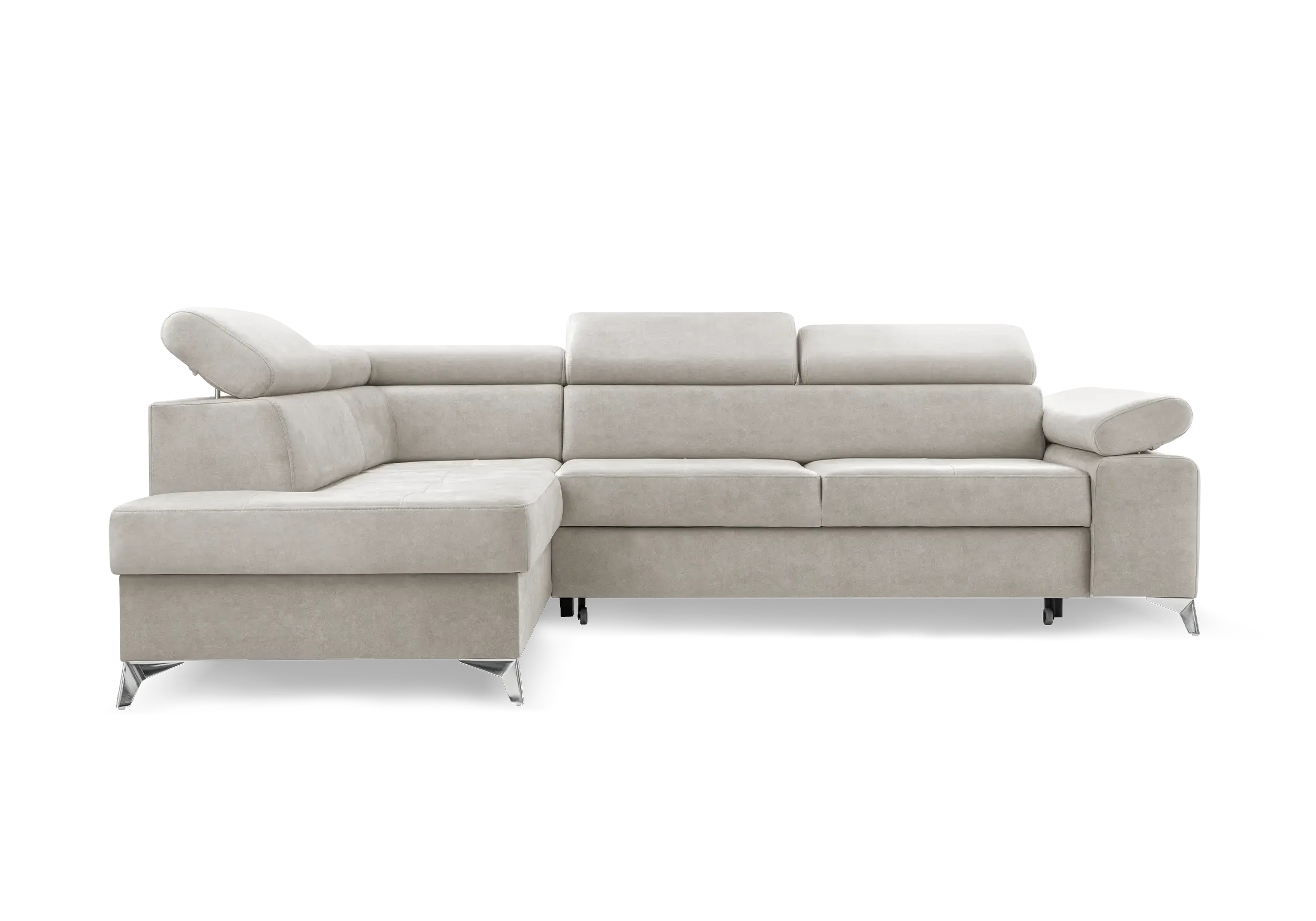 Sedací souprava Madryt Rohová sedací souprava Madryt je dokonalou volbou pro ty, kteří chtějí kombinovat design a praktičnost. Polohovatelné opěrky hlavy, rozklad, úložný prostor a elegantní nožičky. • Vlastnosti sedací soupravy: Kostra sedací soupravy Kostra je vyrobena z masivního dřeva a desek. Výplň sedáků a opěradel Na výplň jsou použity pružina Faliste a pěna T30. Opěrky hlavy Součástí opěrných zad jsou polohovatelné opěrky hlavy. Nohy sedací soupravy Sedací souprava stojí POUZE na kovových nožičkách. Čalouněná záda Díky čalouněným zádům můžete sedací soupravu umístit i do prostoru. Funkce Nedílnou součástí sedačky je také rozklad a úložný prostor. • Rozklad na lůžkoRozkládací mechanismus je jednoduchý a rychlý, což umožňuje snadné přeměnění sedačky na pohodlné lůžko. Rozkládací část je ukryta ve výsuvném šuplíku. Po vytáhnutí se vyzvedne tažením za madlo do výše sedací části, kde vytvoří plochu, na které budou mít dvě osoby dostatek prostoru pro pohodlný odpočinek. • Úložný prostorSedací souprava Madryt nabízí praktický úložný prostor pod otomanem. Tento prostor poskytuje dostatek místa pro uložení věcí a zároveň zůstává skrytý a nenarušuje tak celkový vzhled nábytku. • Podrobné rozměry 274 cm celková šířka 100 cm  výška s opěrkami hlavy 196 cm celková hloubka 127x203 cm plocha na spaní 55 cm hloubka sedáku 46 cm výška sedu 30 cm šířka loketní opěrky 10 cm výška nožek • Barevné provedení - Vena 7potahová látka Vena je složením 100% polyester, čímž je dána její vysoká pevnost a odolnost vůči oděru. Je to na omak velmi příjemná látka.Látka je vyrobena technologií EASY CLEAN, která snižuje nasákavost tekutin. V případě rozlití tekutiny se její kapky hromadí na povrchu látky. Špinavé místo stačí otřít hadříkem a nejobtížněji odstranitelná skvrna zmizí beze stopy. Čistěte pouze jemnými prostředky určenými pro péči o čalounění. Nebělit (chlórovat). Nežehlit. Nesušte v sušičce resp. horkým vzduchem. Nečistěte chemicky. Parametry potahové látky Vena 7 100% PES složení 100% polyester 520 g / m2 váha látky na metr čtvereční 70000 ot. Martindale  otěruvzdornost EN ISO 12947-2 4-5 (2000 ot.) sklon k žmolkování st. 4-6 stálobarevnost ≥600N pevnost v lomu a relativní protažení • • UpozorněníLátky prezentované na fotografiích jsou ilustračním materiálem, barvy se mohou lišit od vyobrazení na fotografiích podle nastavení vašeho zobrazovacího zařízení.