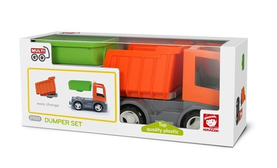 Igráček MuliGO je nově k dostání v praktickém a ekonomicky výhodném balení. Oranžové auto se zeleným valníkem, oranžovou sklápěčkou a majákem představuje ideální set pro malého převozníka. Vyraz na stavbu s postavičkou Igráčka stavbaře, sklop náklad, vyměň korbičku za valníček, nalož si materiál a vyraž s Igráčkem řidičem na cestu. Vyrobeno v České republice.