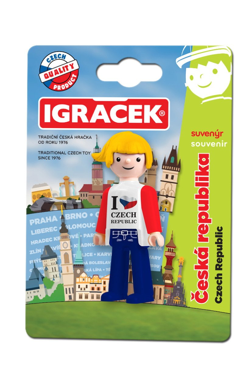 Legendární česká hračka Igráček® s potiskem „I Love CZ“ je ideálním dárkem nebo památkou na Českou republiku. Na zádech postavičky najdete logo Igráček®. Originální suvenýr pro malé i velké je kompletně vyroben v ČR.