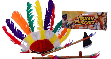 Krásná indiánská sada ve které najdeš všechno co potřebuješ pro velké indiánské hry. Sada obsahuje: sekyrku, čelenku s péry a dýmku.