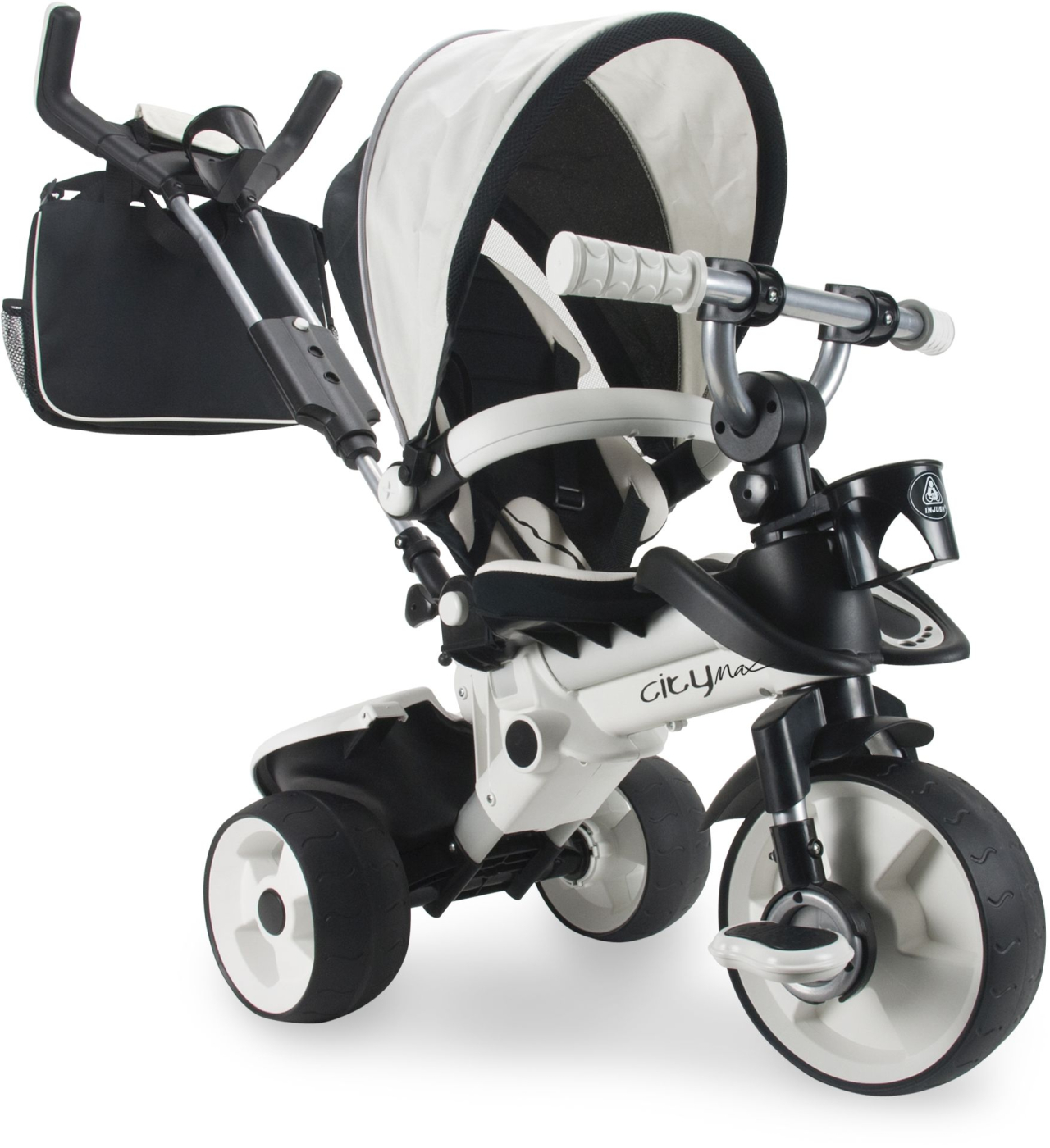 Injusa je renomovaná prestižní španělská značka, působící na trhu od roku 1947. Charakteristická je pro ni vysoká kvalita a detailní designové zpracování včetně výroby licenčních modelů (Porsche, BMW, Mercedes, Honda, KTM atd.). Výroba hraček probíhá přímo ve Španělsku ve 100 % souladu s udržitelným rozvojem. Ročně vyrábí 850 000 hraček, které dodává do více než 120 zemí. V její nabídce jsou akumulátorová elektrická vozidla, evoluční tříkolky, tříkolky, krosová kola, šlapací vozidla, motorky, jízdní kola a zahradní hračky. Dětská evoluční šlapací tříkolka s vodicí tyčí CITY MAX patří do nelicenční řady Innobaby, která je určena pro děti již od 6 měsíců. Naleznete v ní odrážedla, multifukční odrážedla, evoluční tříkolky a tříkolky. Moderní, designová, sportovně laděná evoluční tříkolka s kovovou konstrukcí a pogumovanými koly pro tichou jízdu, vypadající i jako sportovní kočárek, je díky vodicí tyči a ergonomicky tvarované podnožce pro nohy a dalším funkčním doplňkům, vhodná právě pro děti už od 6 měsíců. Tato tříkolka s dítětem doslova roste a přizpůsobuje se jeho vývojovým potřebám, což její největší výhodou. Z počátku dítě jezdí s nataženými nožičkami jako v kočárku, později je má položené na pedálech, ale díky vodicí tyči nemusí šlapat a může vnímat jen pohyb šlapacích pedálů a nakonec tříkolku plně obsluhuje samo. Veškeré doplňky se dají snadno montovat a demontovat. Doplňky a vybavení: • Robustní hliníková konstrukce • Pogumovaná kola • Šlapací pedály se dají přepínat do polohy napevno nebo volnoběh • Výškově nastavitelná vodicí tyč opatřena taškou • Ergonomická podnožka pod nohy dítěte • Ochranný oblouk proti pádu dítěte • Pětibodový bezpečnostní pásový systém • Rodičovská brzda za zadním kolem • Nastavitelná zádová opěrka a sedadlo • Polohovatelná stříška • Držák na pití • Uzavíratelný plastový košík • Po odmontování všech ochranných komponentů lze používat samostatně jako tříkolku • Výška sedadla/sedla od země: 40 cm • Průměr kol: přední 25,5 cm, zadní 20 cm • Nosnost: do 25 kg • Váha produktu: 9 kg • Rozměry produktu: 118,5 x 49,5 x 110 cm • Doporučený věk: od 6 měsíců • Vyrobeno ve Španělsku Doplňující informace: • Nádherný španělský design • Precizní zpracování • Velmi snadná manipulace během samotné hry • Materiál: kov, plast • Baleno v krabici • Rozměry balení: 48,3 x 31,1 x 63,5 cm • Váha balení: 10,44 kg
