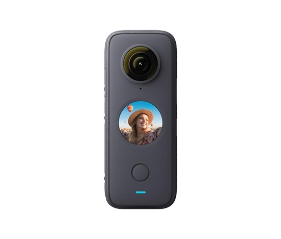 Akční outdoorová 360 kamera Insta360 ONE X2, robustní konstrukce, vodotěsná do 10 m, dvojice 360° objektivů s celkovým rozlišením 5.7K a 30 fps, kodek H.265, dotykový displej, čtyři mikrofony pro 360 audio, automatické stříhání a úpravy v mobilní aplikaci Insta360 ONE, ShotLab, SteadyCam režim, stabilizace FlowState, ovládání hlasem. 80 minut natáčení. Hmotnost 149 g, 46,2 x 113 x 29,8 mm.