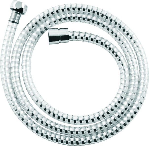 Transparent/ chromová, plastová sprchová hadice Biflex je elegantním doplňkem vaší koupelny. koncovky z pochromované mosazi o-kroužek délka: 150 cm